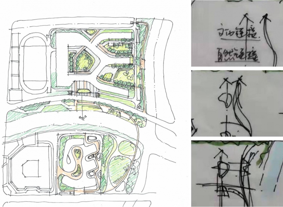 ▼景观庭院初步构思手稿,Preliminary conceptual manuscript for landscape courtyard
