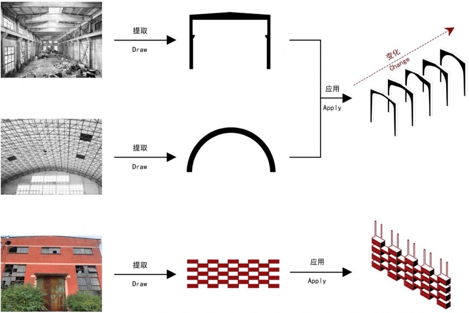 社区中心具有开放性、公益性、多元性、复合性的建筑特征,在提供社会服务和公共空间的同时也应记录城市的历史印迹,公共文化层面上的原真性与功能性物质空间的真实性同样重要。在即将被改造成社区中心的厂区,有对过去的回顾,也有对未来的期待,我们希望能够抓住这一机遇,重塑场所的原真性,既给周边居民创造一个开放的公共活动平台,也是对工业化时代印迹的珍贵留存。