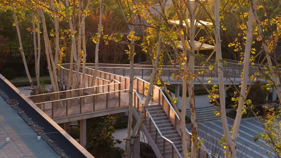 ▼“云影”空间是建筑群的核心轴线,The “Cloud Shadow” space is a long corridor serving as the core axis of the building complex