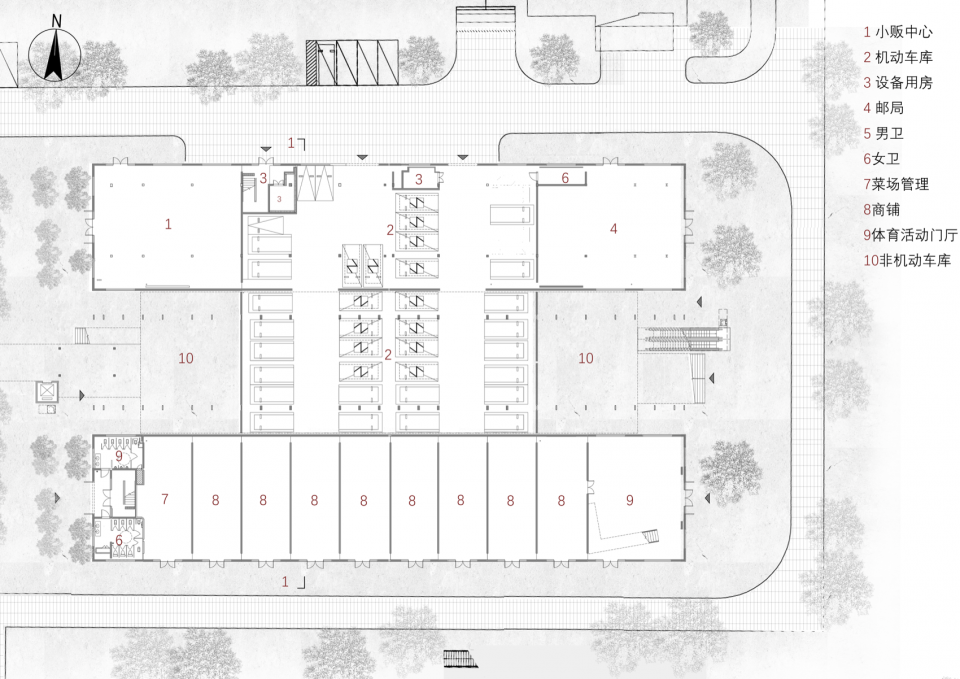南京压缩机厂成立于1950年代,闲置的厂区保存了八十年代鼎盛时期的厂房格局,在南京市规划局公布的《南京市工业遗产保护规划》名录中属于二类工业遗产。2019年当地政府决定将南京压缩机厂房旧址改造为社区中心,为周边居民提供社区服务、文体活动、医疗养老等功能。将社区中心功能植入老厂区,不但减少了政府对于社区中心的土地投入,而且为荒废的厂区引入了社区生活的活力。这样的功能要求填补了工业遗产更新项目类型的一个空白,同时,社区中心复杂的功能配置也大大提升了设计工作的难度。