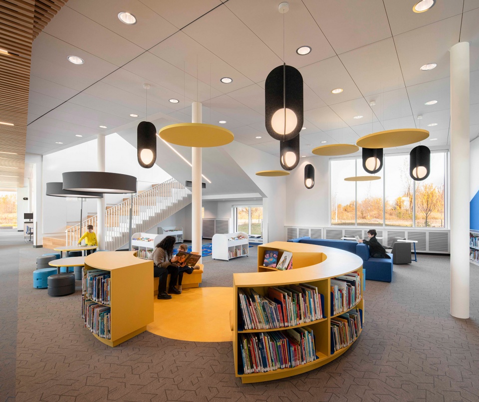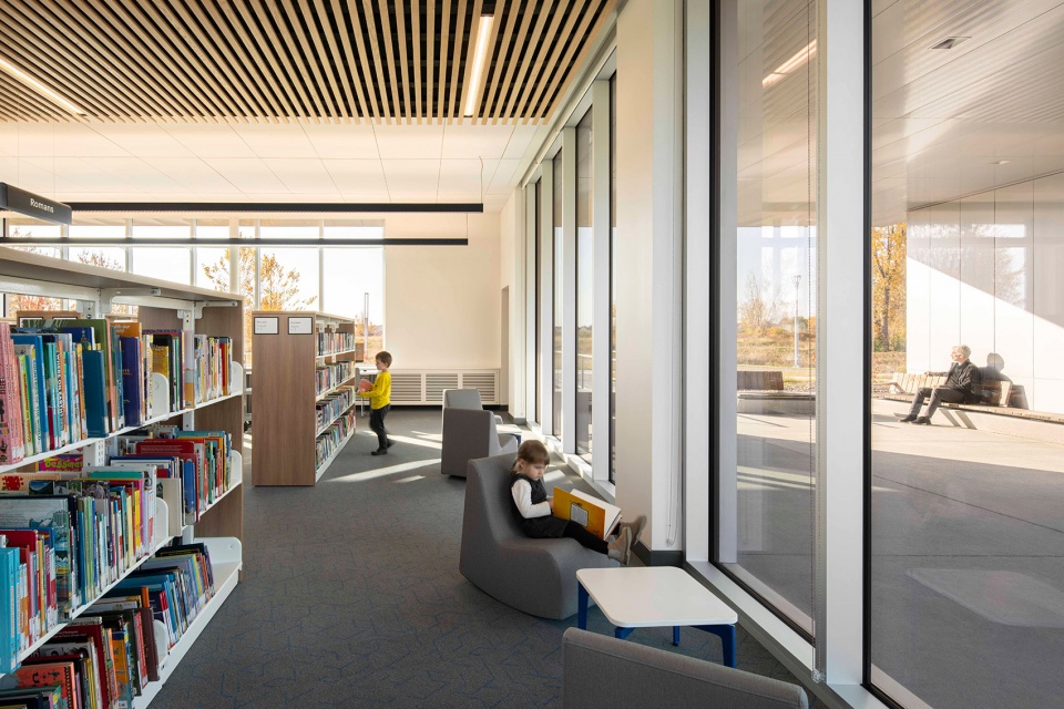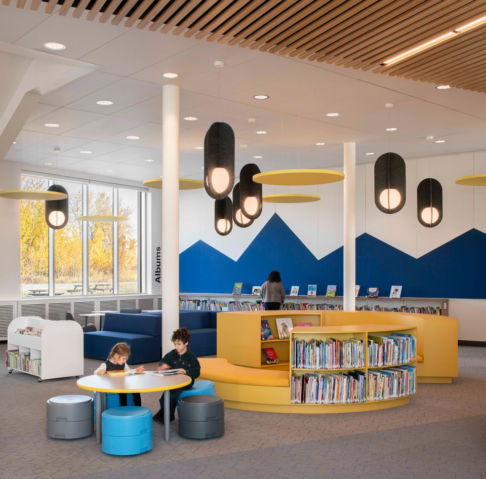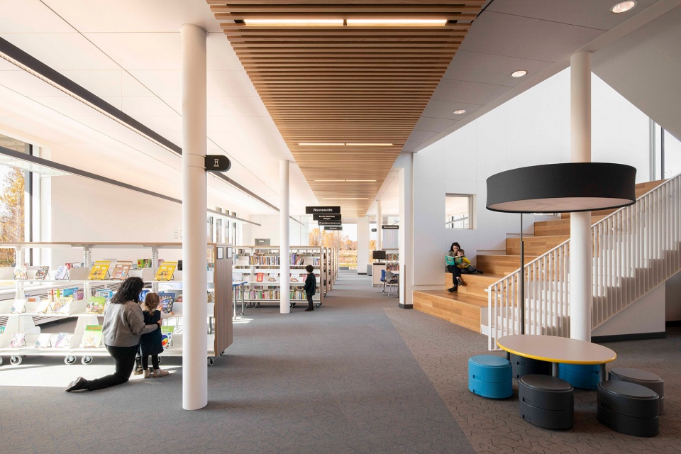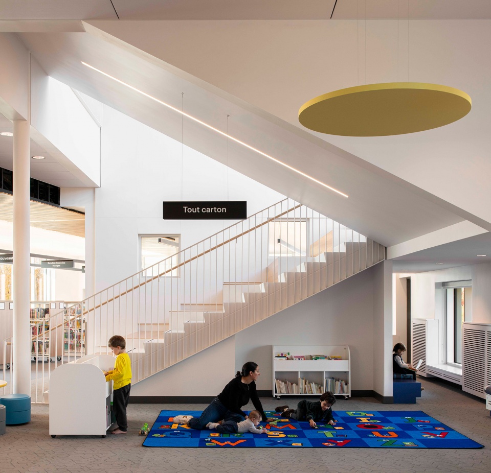 Inclusion and community values guided the interior design objectives. Seeking to offer welcoming, polyvalent, and democratic spaces for the community, the project steers away from traditional models to propose a library that befits the 21st century. This building is conceived as a third place—a public space that people visit not just to read, but also to learn, exchange, and gather.