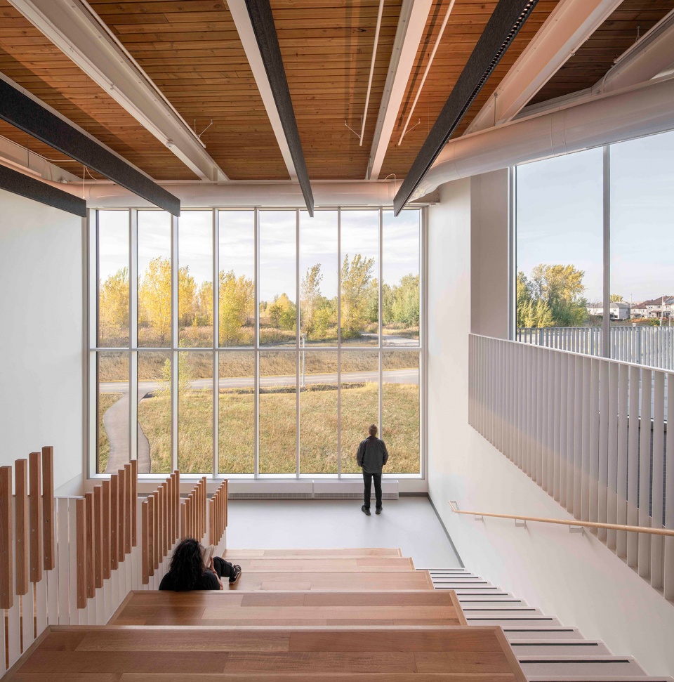 With its bioclimatic approach, social roots, and exemplary landscape integration, Espace citoyen des Confluents is a model for Laval’s future municipal infrastructures. It’s more than just a building: it marks a turning point in the way public facilities can be designed in an urban environment, thanks to the restoration of an abandoned site into a sustainable living space. This pioneering approach is part of a broader vision for the re-naturalization of transition zones, guiding the future of municipal construction towards solutions that are more resilient, inclusive, and rooted in their territory.