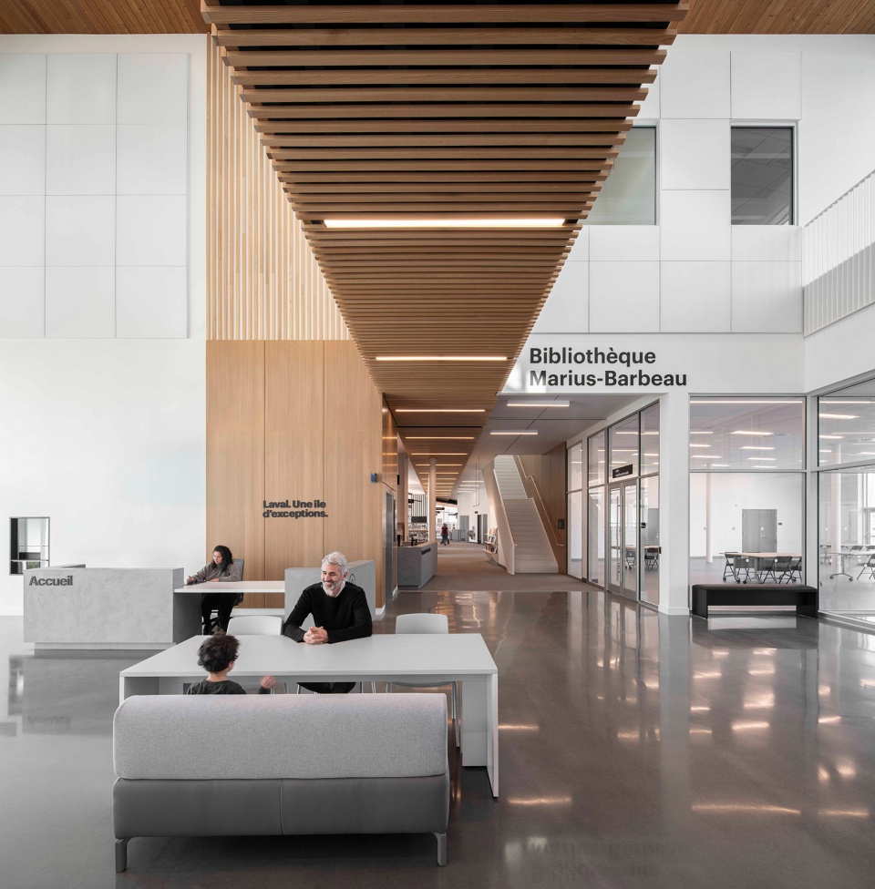 A new architectural and social landmark is coming to life in eastern Laval : built on a 13-acre site that once housed a petrochemical plant, the new Espace citoyen des Confluents represents a genuine urban, social, and environmental renaissance. In providing the community with a library, meeting spaces, a multifunctional theatre, and a police station, the new space addresses an essential demand for public infrastructure in the neighbourhood. Mission accomplished, since its opening in the fall of 2024, the local residents have made this long-awaited meeting place their own and have turned it into a vibrant hub of community life.