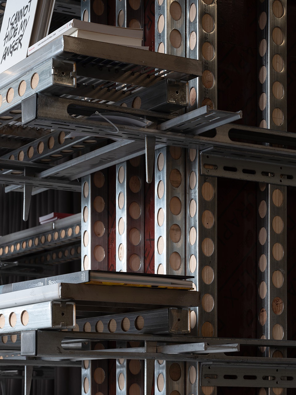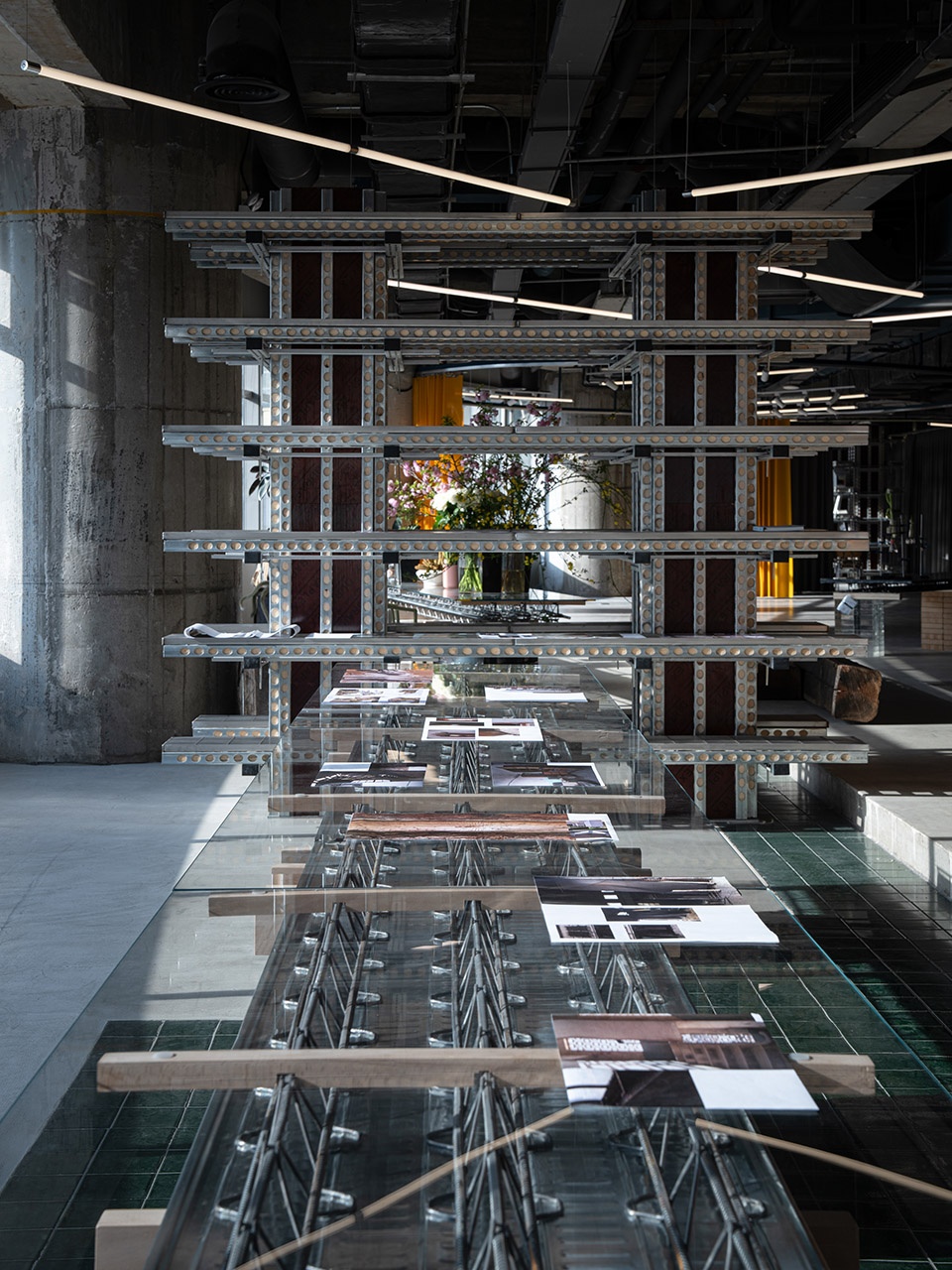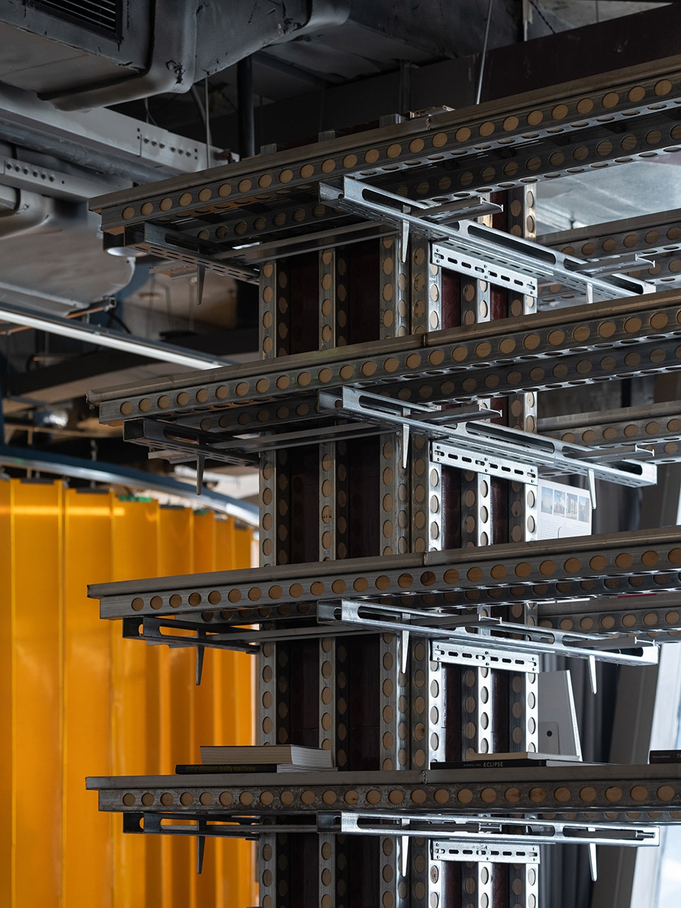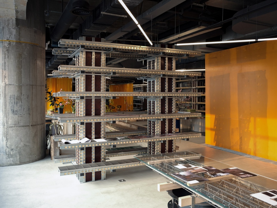 YDX数字化混凝土模架集成系统:建筑工业化与智能建造技术结合的重要工具,用于墙、柱、梁、顶的加固。模块化的拼装提高施工效率,降低施工成本与浪费。在889GLO艺术空间中作为置物架和书架。