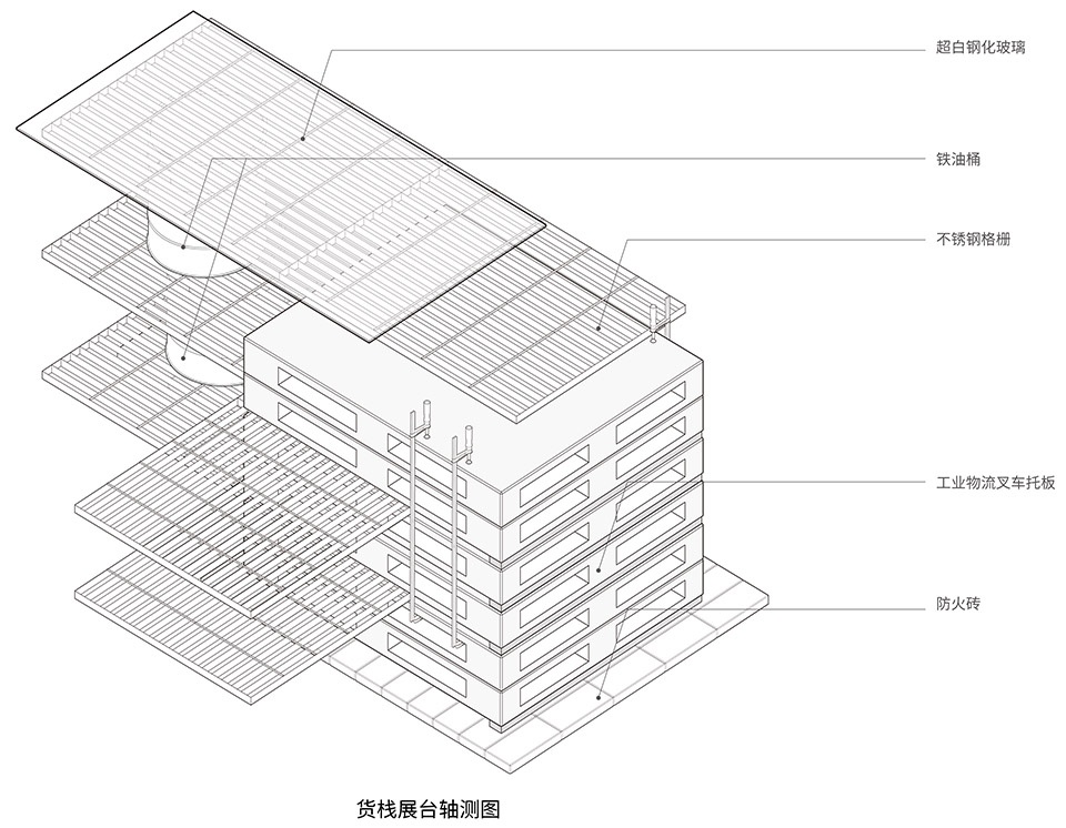 ▼货栈展台轴测图,warehouse display platform axonometric