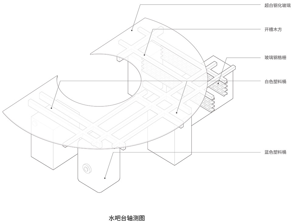 ▼水吧台轴测图,bar counter axonometric