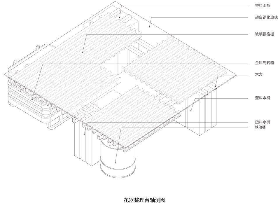 ▼花器整理台轴测图,flower sorting table axonometric