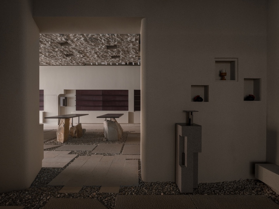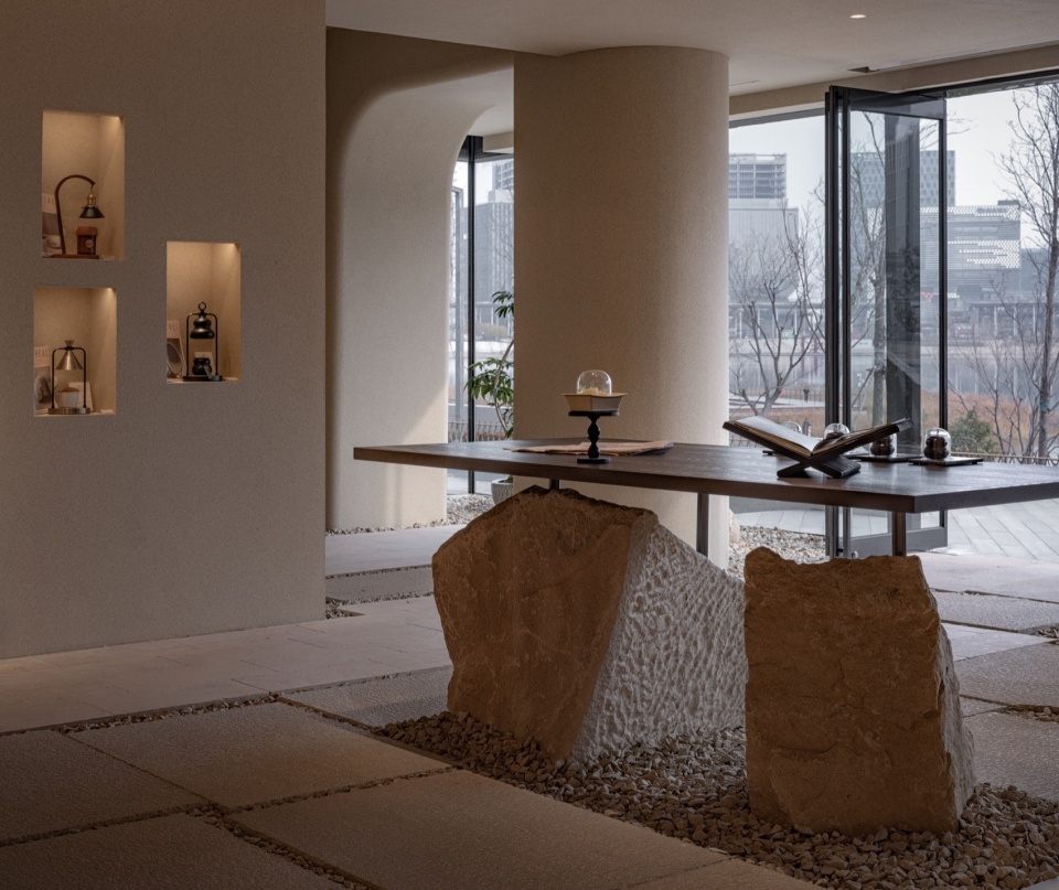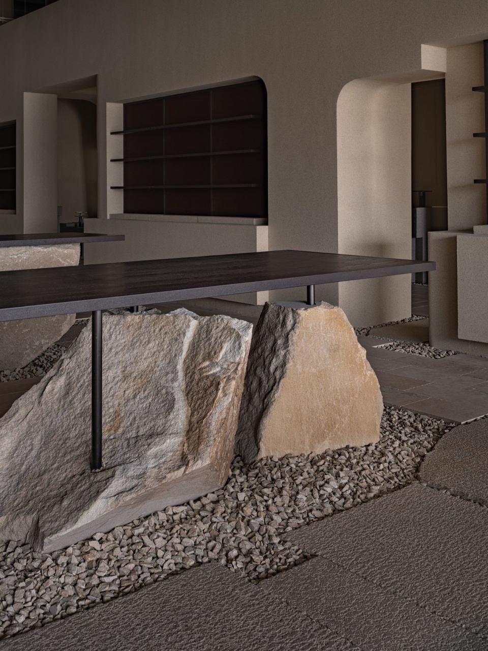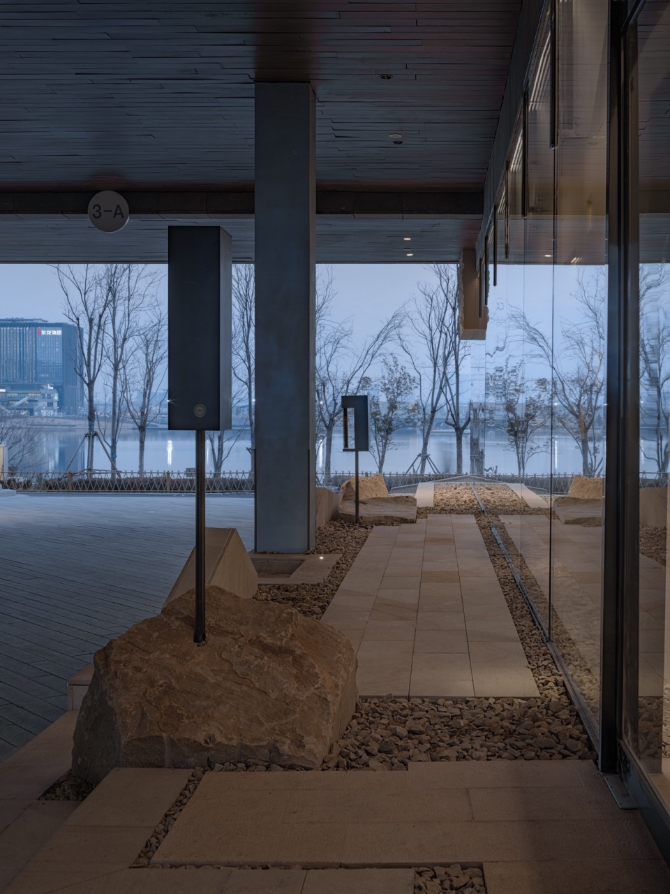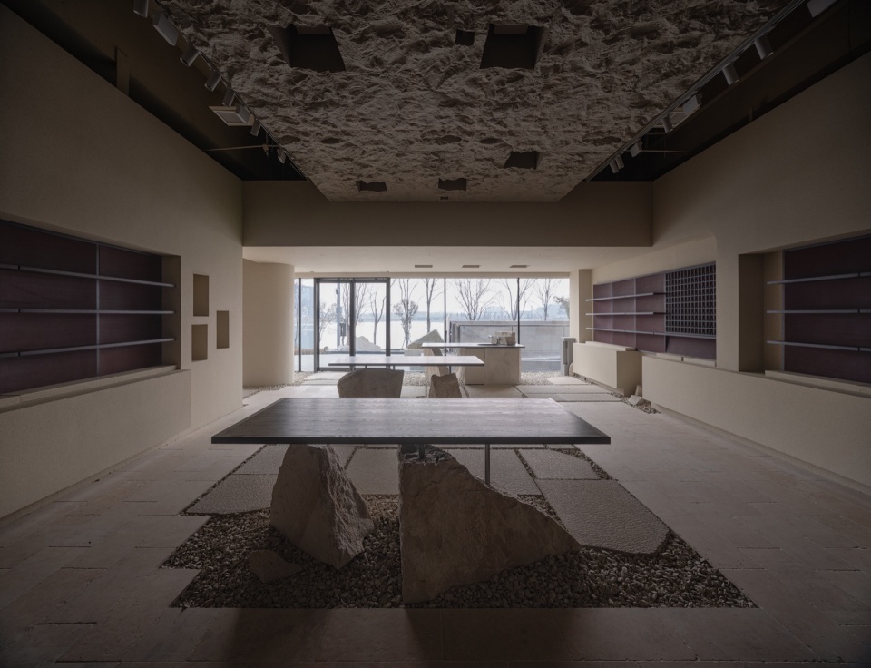 This project has thoroughly explored the possibilities in “natural commercial space” . Benefiting from the profound resonance we shared with the client from the very beginning of this project. The store design incorporates both the basic functions of commercial store (the Stone Chamber), an artistic space for exhibitions (the Stone Corridor), and an outdoor landscape that integrates with the environment (platforms and piers). These three elements are unified under the vision of a “celestial cave by the lake.”