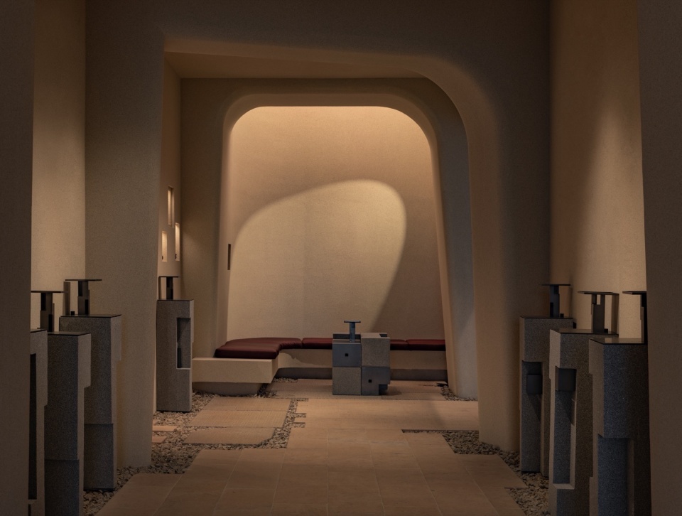 ▼石龛墙,灵感源自洛阳龙门石窟,Stone niches, Inspired by Luoyang Longmen Grottoes