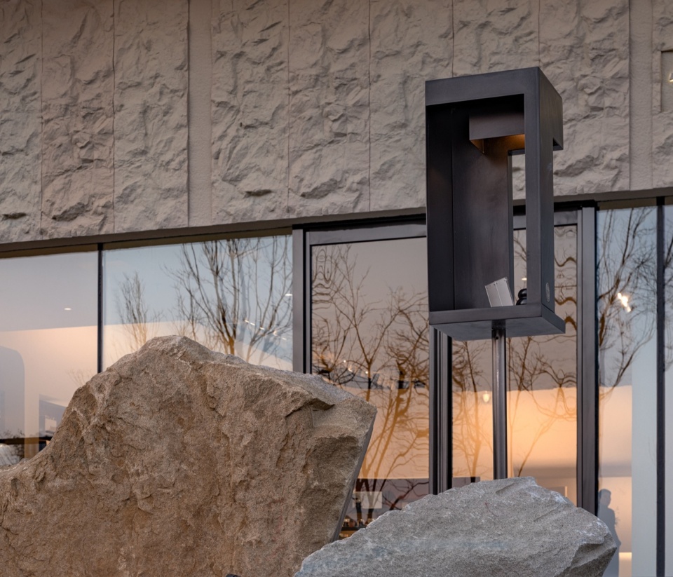 得益于店铺两个界面的落地玻璃,洞天里的一些自然结构,片山残汀,可以从室内一直蔓延到室外。它们既化解了室内外场地的高差,也是对人群的自然邀约。将室内外自然而然地拉结在一起。石林中,随机地嵌入石灯,石灯中可放置体验香薰,形成天然的“露天香氛博物馆”。