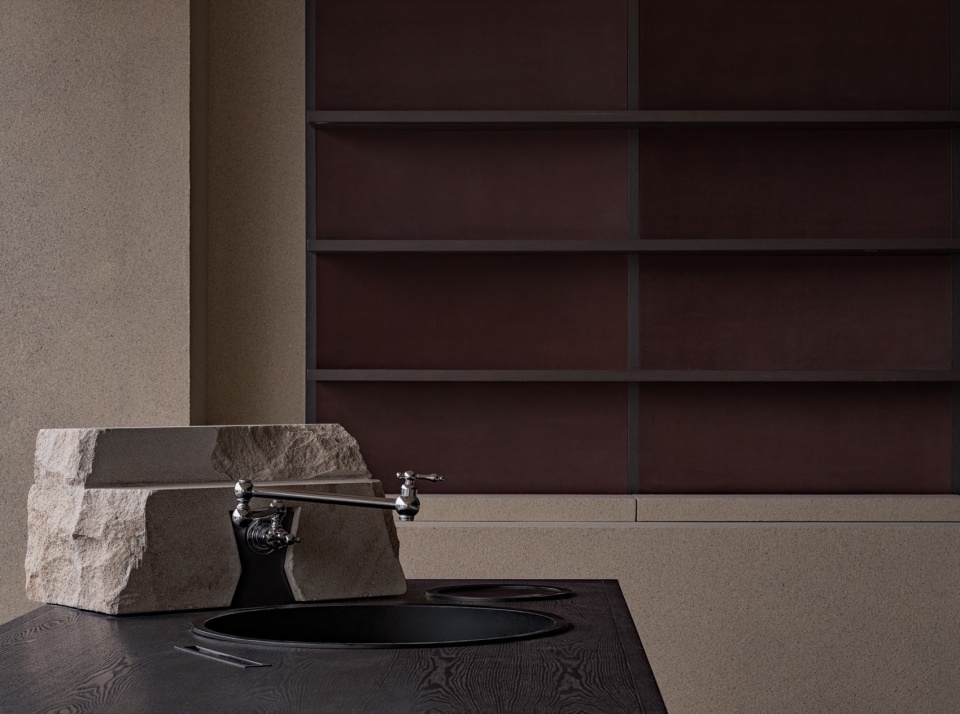 ▼原石制作的水龙头造型,faucet ‘growing out of the raw stone’