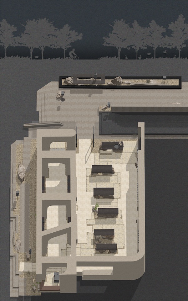 The interior terrain extends all the way to the exterior, forming the concept of ‘a pier’