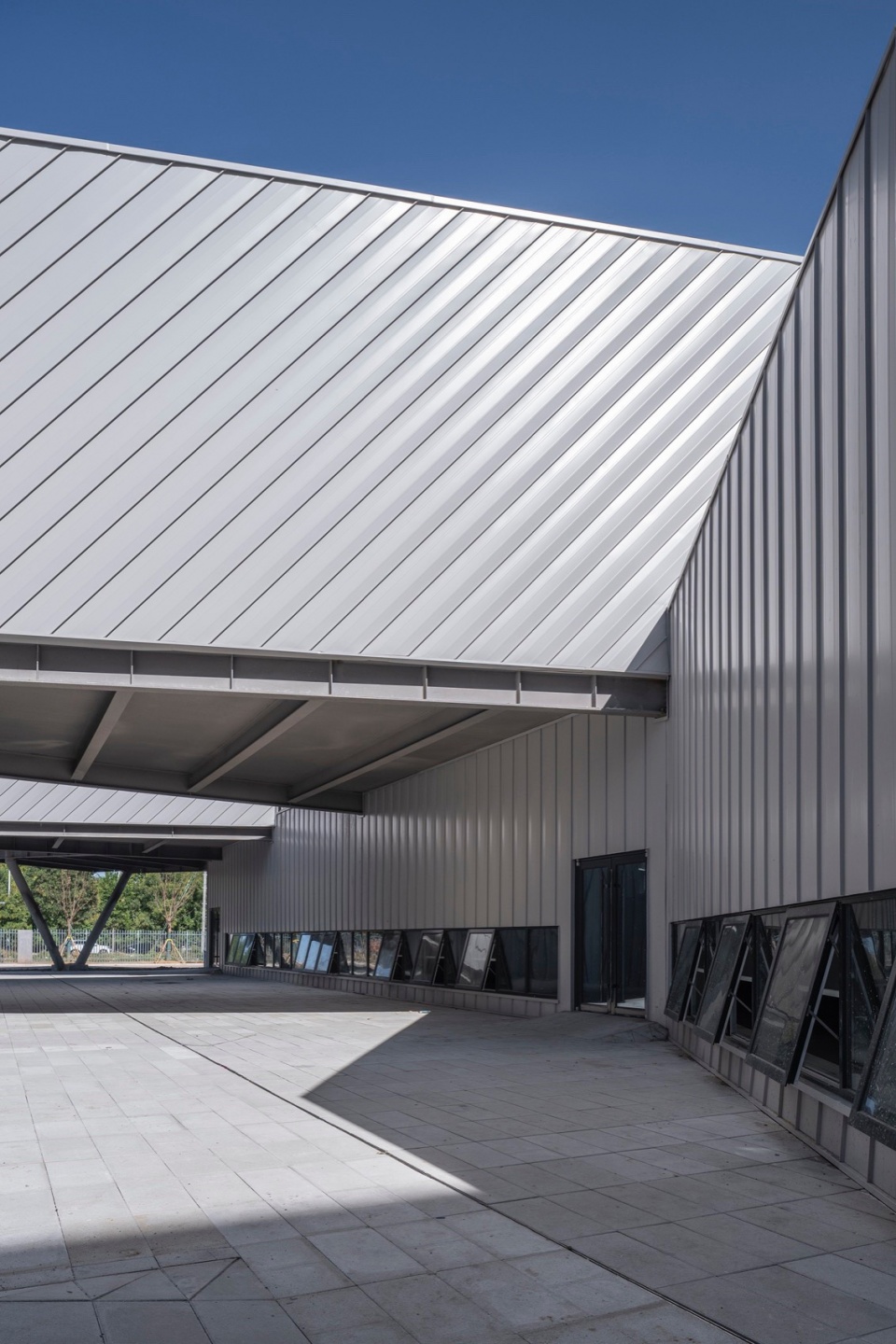 The complex of equestrian hall and art museum are located on east of the campus’s north entrance. Due to site constraints and budget considerations, the architectural form of the equestrian hall and art museum must first adhere to the standard size specifications of an indoor equestrian venue. As a result, the primary structure is a simple rectangular space with a portal frame design.