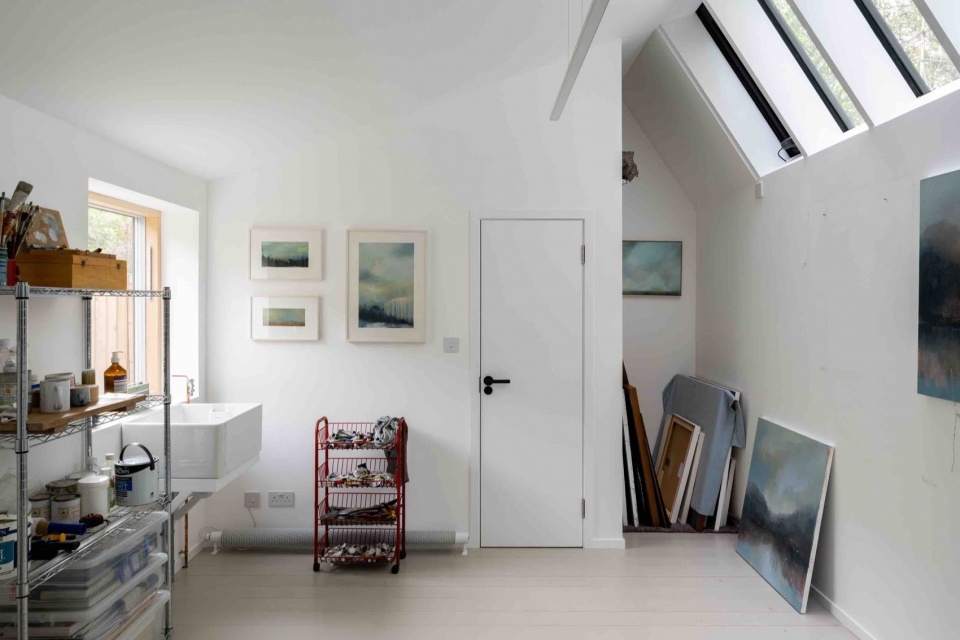 Schindel studio is a purpose built, sustainable artist’s studio in Leytonstone, East London, for the landscape painter Amelia Humber.