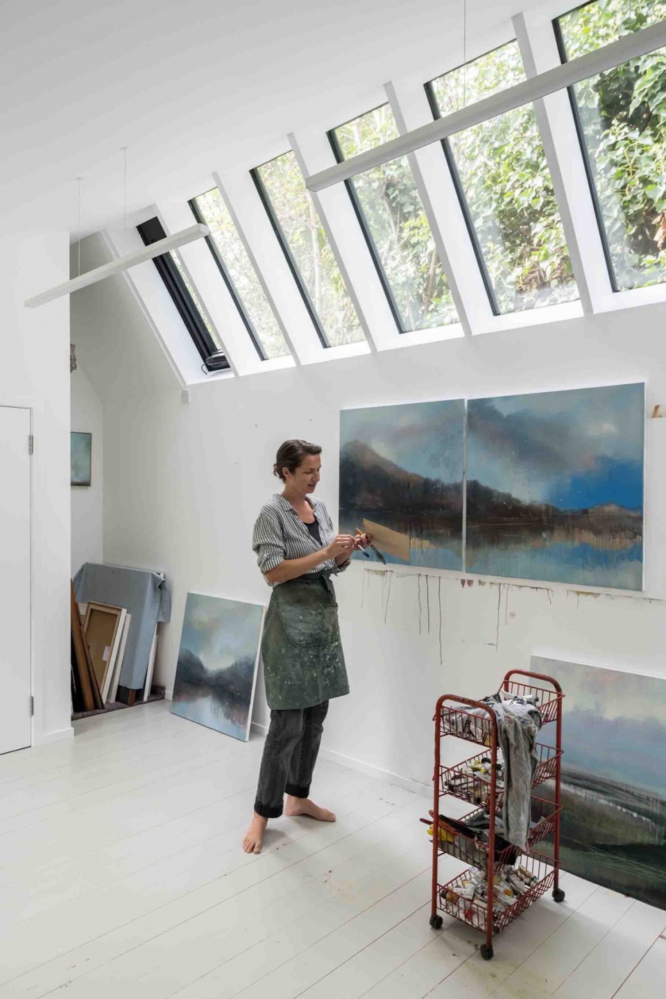 The building’s form and articulation are entirely in response to its function as an artist’s studio. The roof is pitched to allow for north light, and the wall space is maximised for artworks. There is one single window over the large butler sink is where artwork would not have been able to be hung in any case. The interior has been envisaged as a ‘white box’, providing robust and durable working surfaces that are easily repainted.
