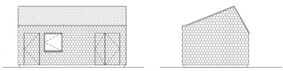 建筑的形体与细部完全围绕其作为艺术工作室的功能展开。屋顶采用斜面设计,以引入稳定的北向自然光;墙面则最大限度地预留挂画空间。室内仅设置一扇窗户,位于一个大型洗涤池上方,避开了画作的展示区域。内部空间被构想为一个“白盒子”,提供坚固耐用、便于反复粉刷的工作表面。