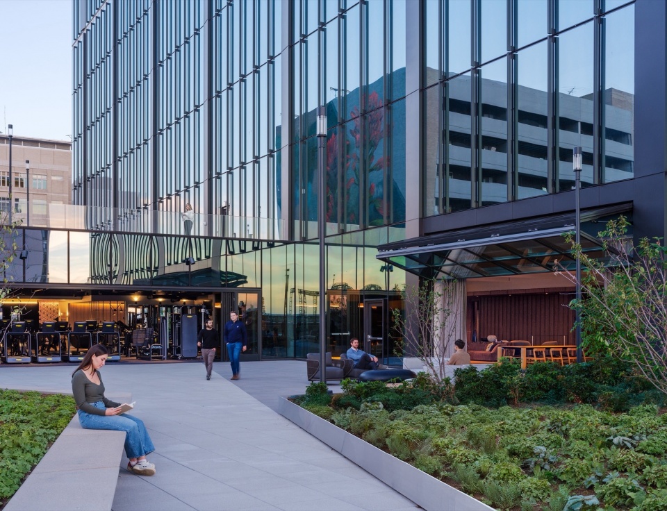 The project marks the fourth collaboration between Riverside and GP, and the first outside of Chicago. The same developer-architect team also delivered 320 South Canal (2022), Bank of America Tower (2020) and 150 North Riverside (2017)—all of which are certified LEED Gold, WELL Platinum and WiredScore Platinum. The 1900 Lawrence building has already earned Platinum certification for both LEED and WiredScore, with WELL Platinum certification expected later this summer.