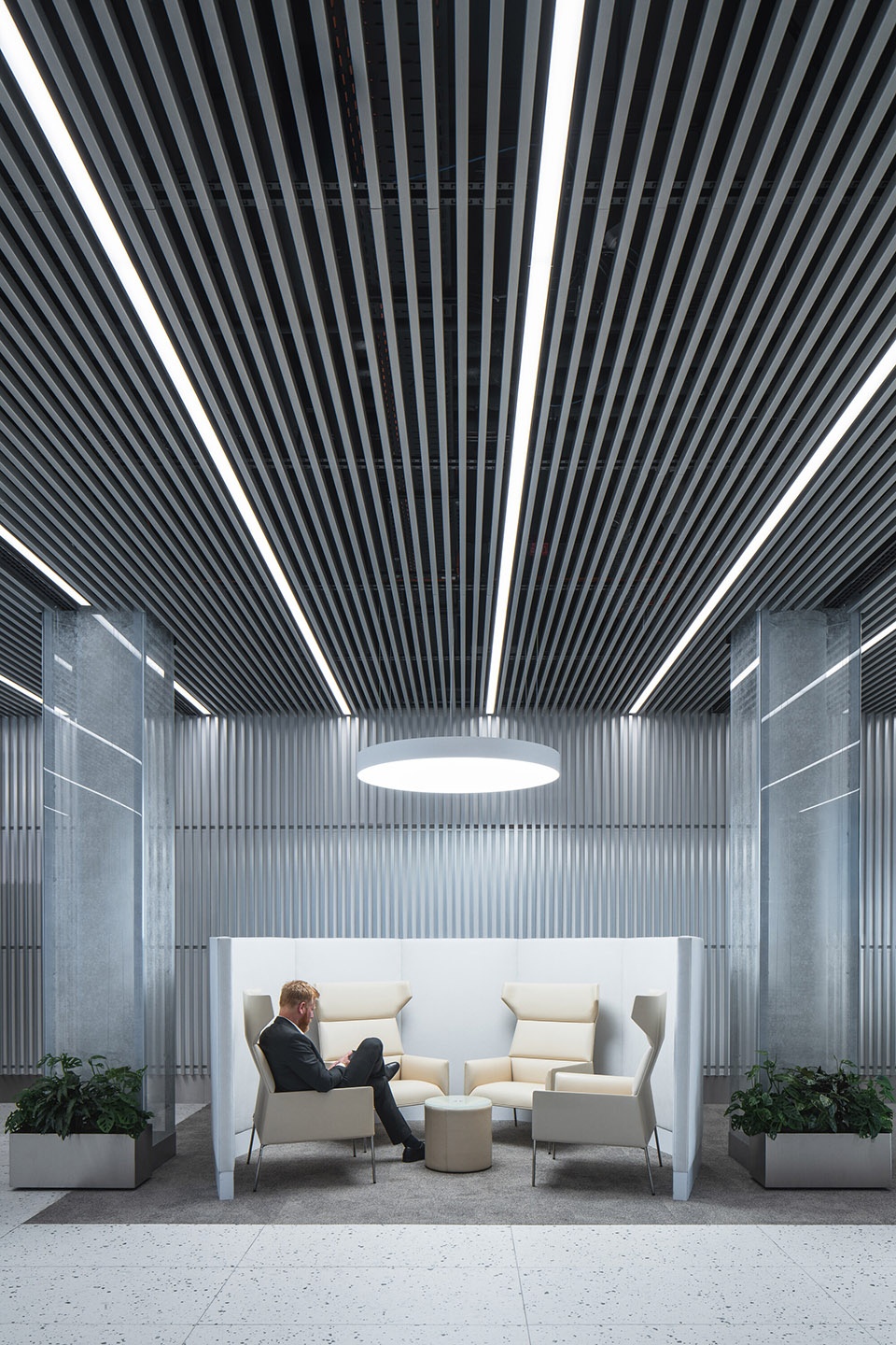 ▼通过垂直绿植墙和独立绿植器实现的植被融合,Integrated greenery—through green walls and standalone planters