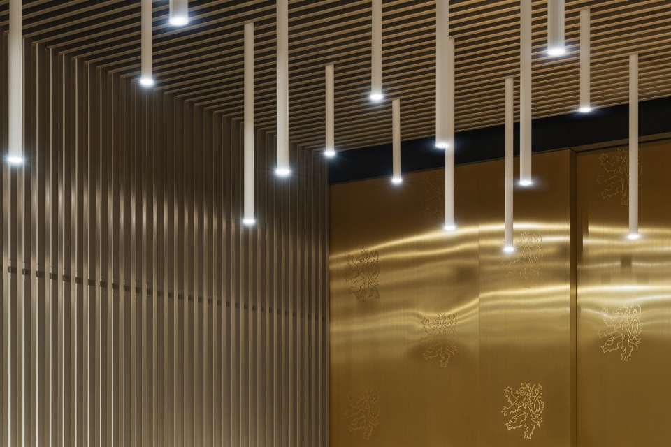 ▼礼宾接待室内饰有捷克狮子徽章图案,separate protocol lounge, featuring the Czech lion motif