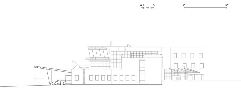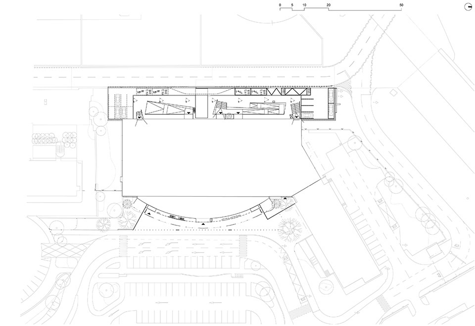 本次改造在尊重原1990年代后现代主义建筑风格的基础上展开。陆侧立面得以保留,原有的雨棚结构经过翻新或更换。周边区域通过减少过多的硬质铺装、增加绿化、将闲置区域改造成草坪地带并种植树木和灌木,使公共前广场变得更加宜人且清晰易读。新增的街道设施、不锈钢安全柱和背光信息标识也有助于明确动线。