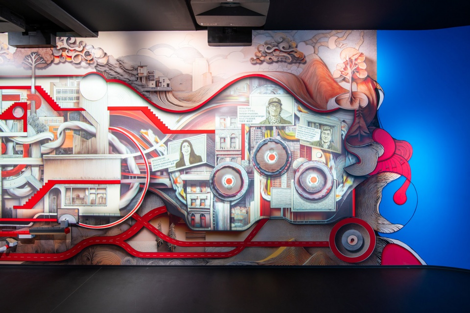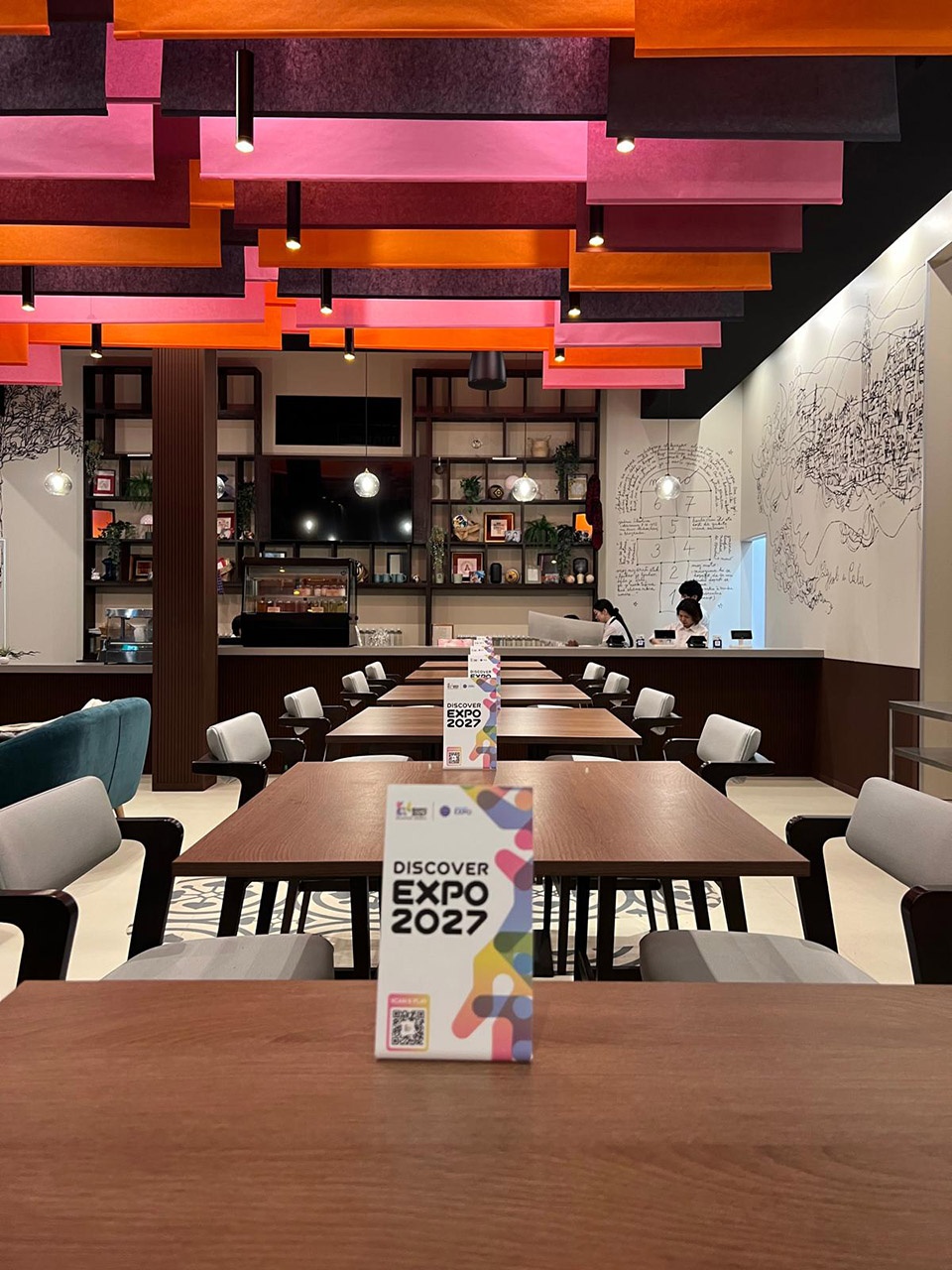 ▼室内展示有关2027年世博会的主题,