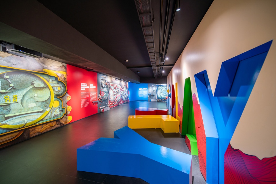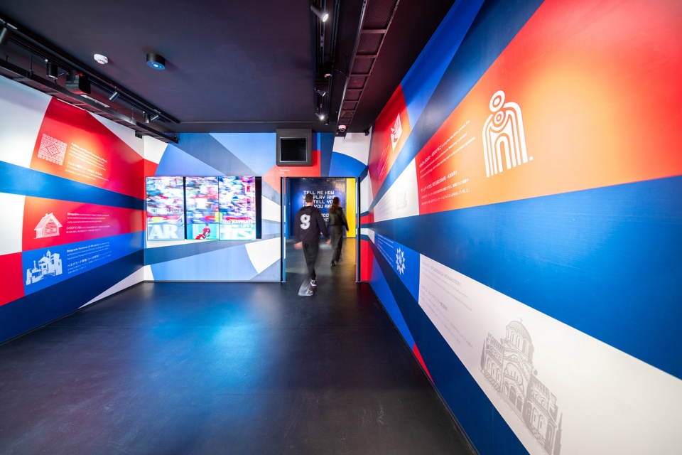 访客通过一条缓缓上升的“城市阶梯路径”进入位于二层的互动主题展区,探索塞尔维亚在社会贡献、创造潜力及其富有玩味的国家形象。展区通过触觉与数字媒介交织,打造沉浸式体验。其中最具标志性的亮点空间是“红色主题花园”(Red Thematic Garden),该空间虽为单色构成、开放式屋顶的“静谧方盒”,却通过声学隔离营造出沉思与宁静氛围,构成展览动线的冥想收尾,与展区整体的丰富感形成对比。