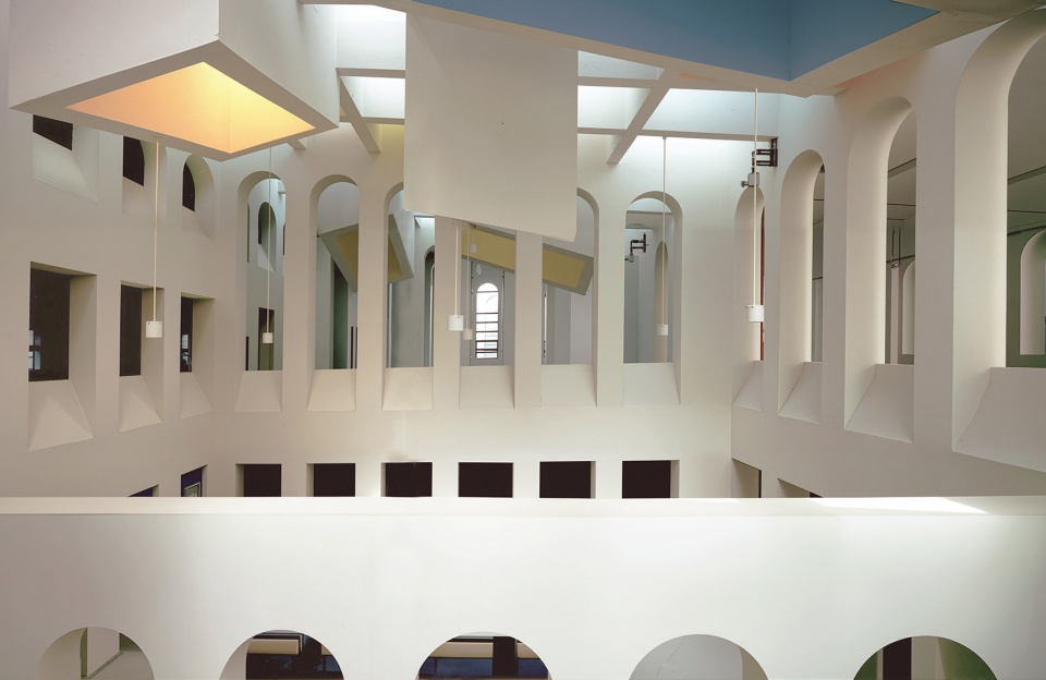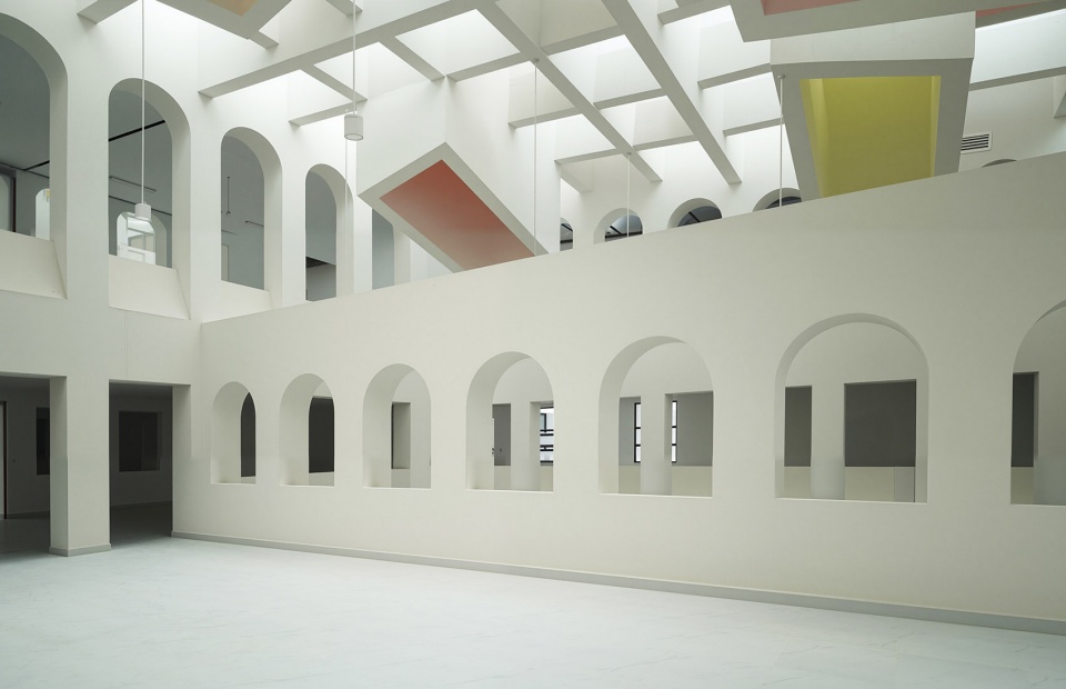 ▼通过层层叠叠的拱形开口进行节奏化表达,the interior space is also strongly punctuated by layered arched openings