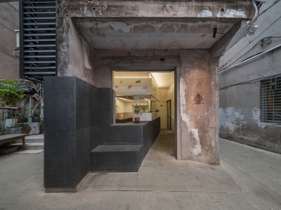 The project site is located at the three-way intersection of Shuangjingtou vegetable market in the old city area of Wenzhou. The original building was a narrow two-story residential building. The design layout abandons the common hierarchical pattern of up and down, and instead separates the space horizontally. By setting up two independent staircase systems, the building is divided into two units arranged side by side, achieving independent coexistence between the curry shop and the bar.
