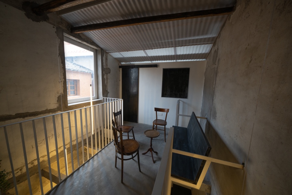 The top of the building adopts a double-layer roof system, and semi transparent resin wave tiles are added below the original tile roof as a secondary roof. The cavity layer can serve as both in-sulation and leak proof, and integrate lighting, air conditioning, and other equipment. At the same time, the secondary roof also creates independent sloping roof imagery for each of the two spac-es on the second floor.