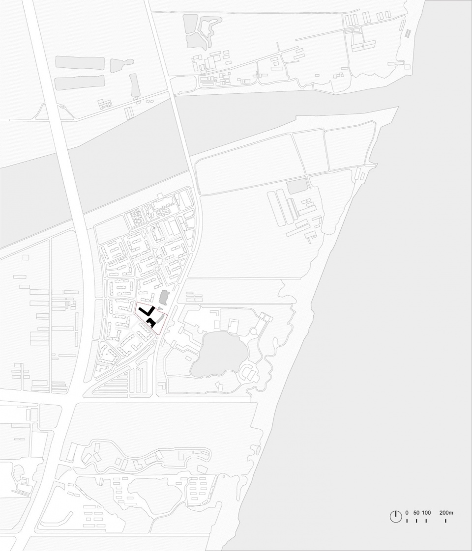 Youyi Bay, a small community comprised of a group of buildings and several plazas, is situated at the southern entrance of the ‘Aranya North Shore Community’ in Qinhuangdao. It serves as the central hub for public activities in the southern part of the entire North Shore community. As the nearest coastal resort to Beijing, Qinhuangdao is a highly popular tourist destination. The Aranya community has long been renowned for hosting various cultural and artistic events, attracting many families, freelancers, and artists to reside and create here. We aim to create a vibrant, mixed-use neighborhood at Youyi Bay, serving both the community and visitors, through a blend of functions and spatial planning, offering a pleasant scale and intimate atmosphere.