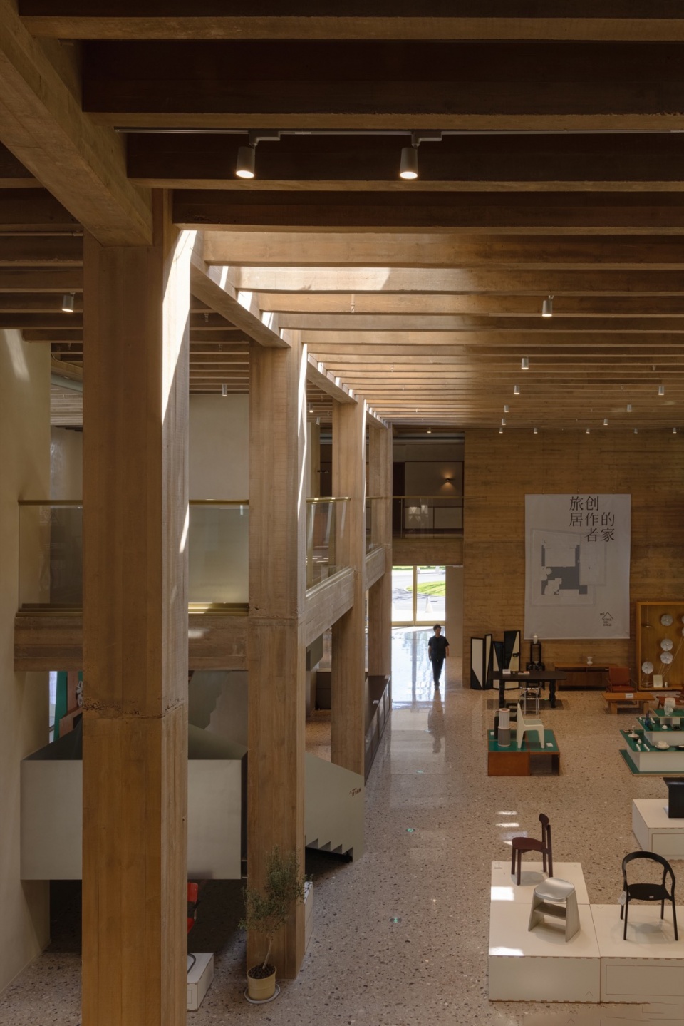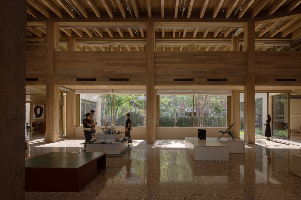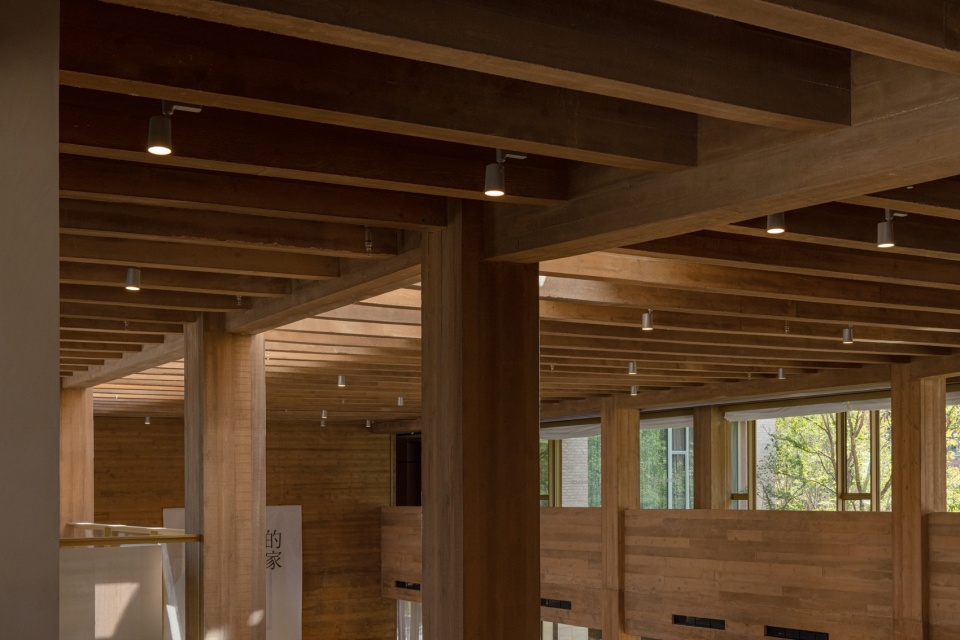 ▼均质的密梁和天光统一了酒店的公共空间,The homogeneous rafters and skylights unify the hotel’s public spaces