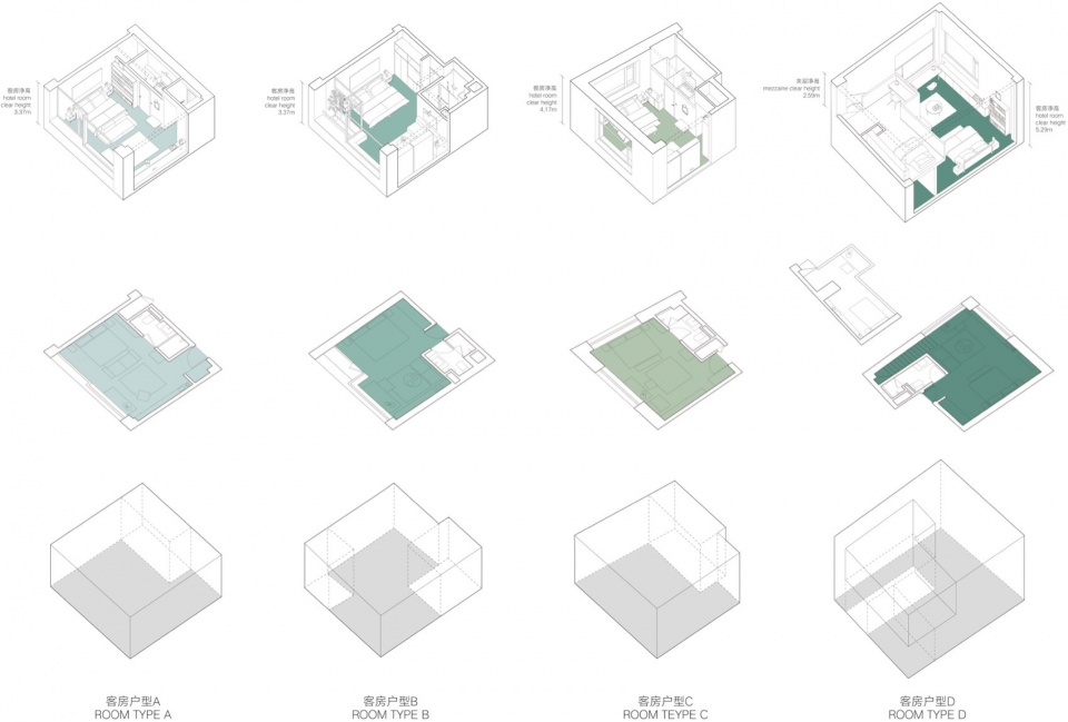 ▼酒店房型轴测图,Axonometric diagram of hotel room type