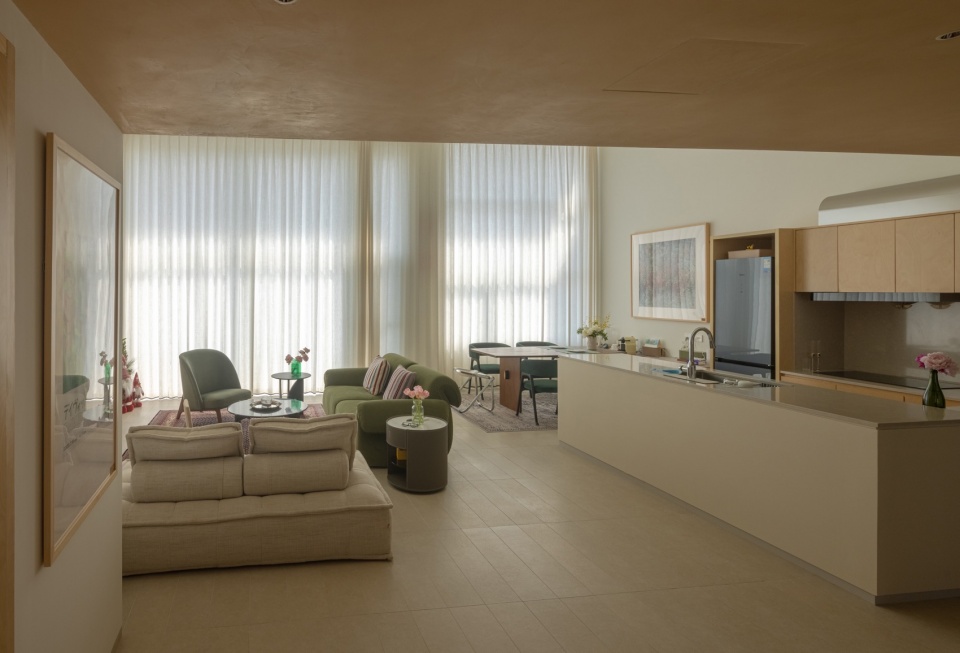 ▼公寓内客厅的面宽和层高提供了良好的视野和采光,The large living room in the apartment, with its wide frontage and high ceilings, offers excellent views and natural lighting