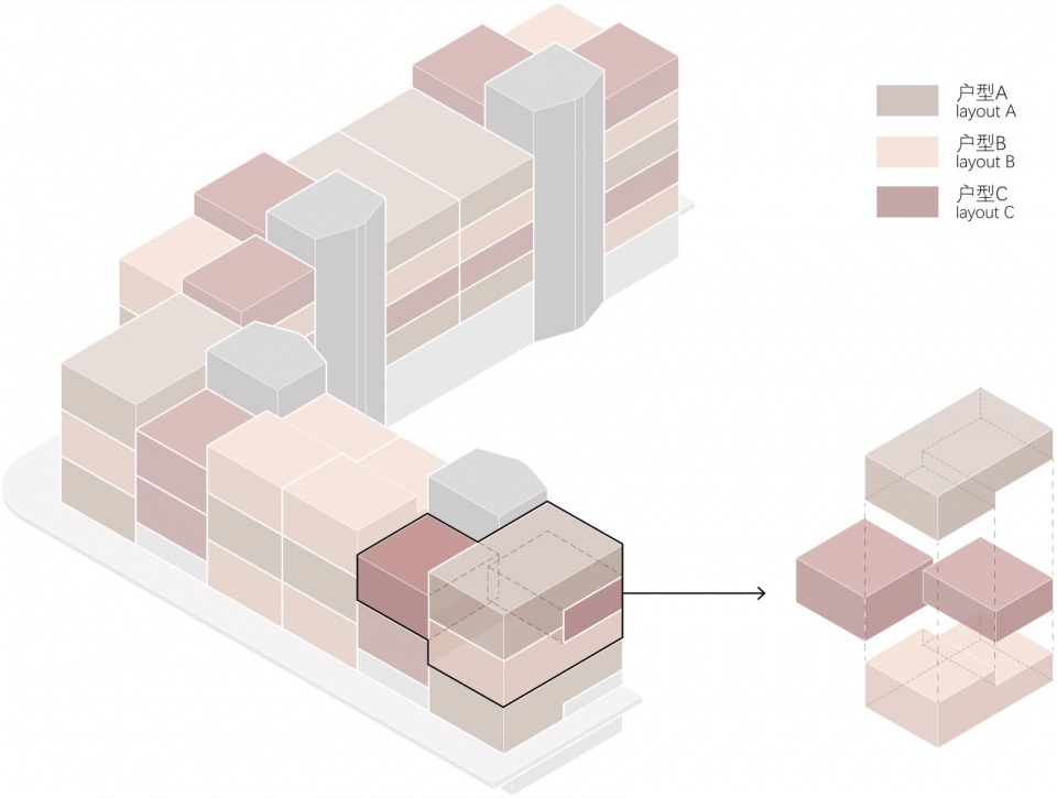 ▼公寓户型的组合关系及其分布,Diagram of apartment layout combinations and distribution