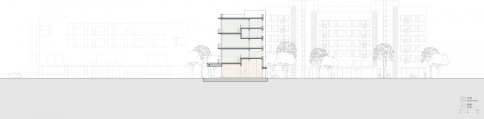 ▼公寓剖面图,Cross section of the Juanzong Apartment
