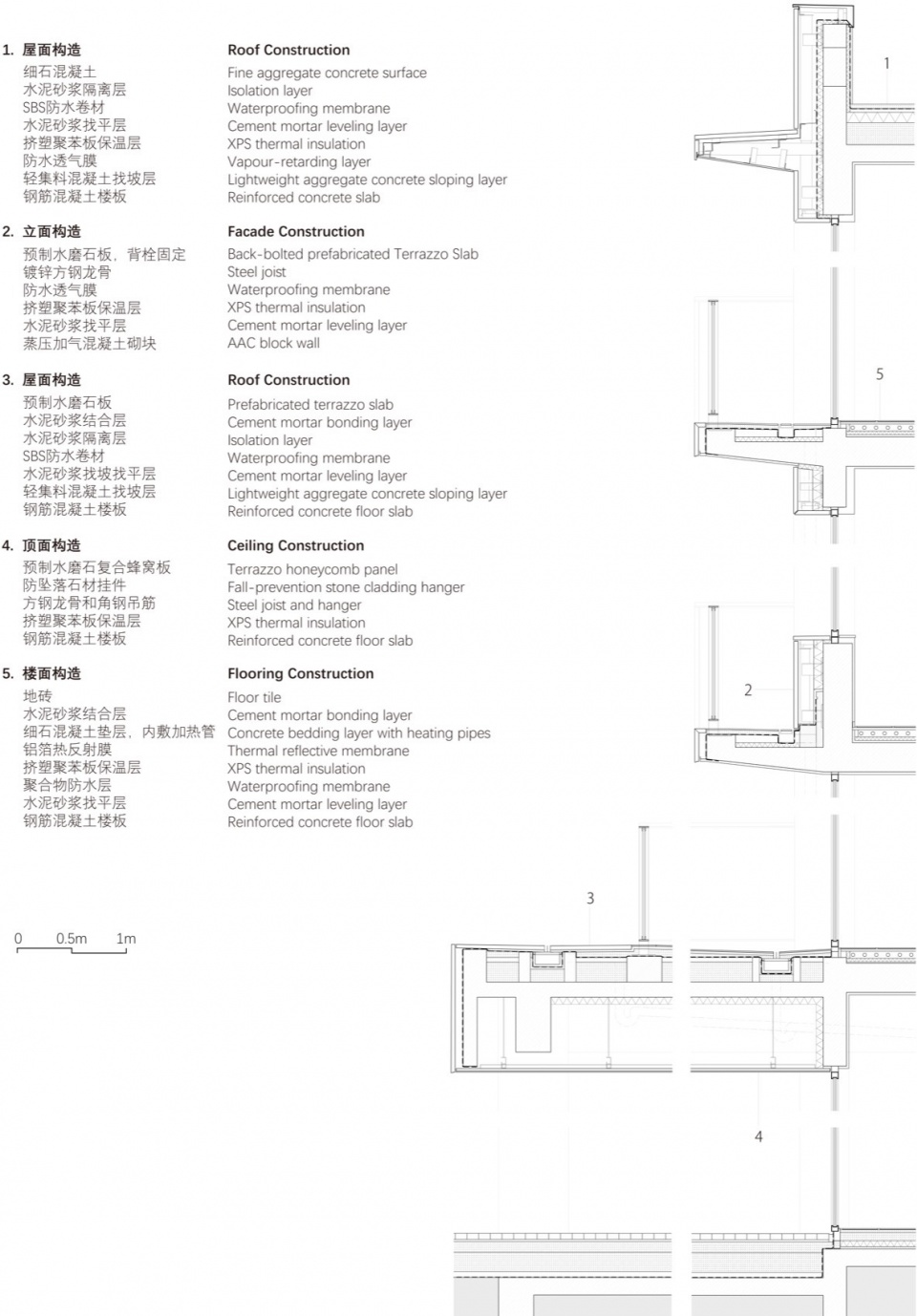 Main Building Materials: Exposed Concrete, Cement Brick, Travertine, Precast Terrazzo Panel, Stucco