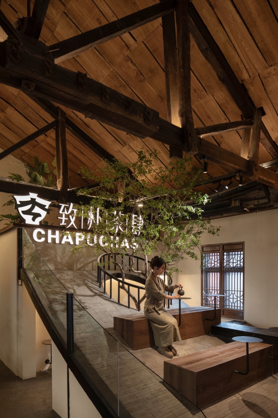 Leveraging the old factory’s high ceiling advantage, raised floors and staggered platforms break the horizontal monotony of industrial space. Tearooms at varying heights—some by water, others by trees—create rich visual and experiential layers. As customers move or pause, shifting perspectives interweave industrial structures, natural scenery, and tea-drinking scenes, infusing the space with dynamic poetry.