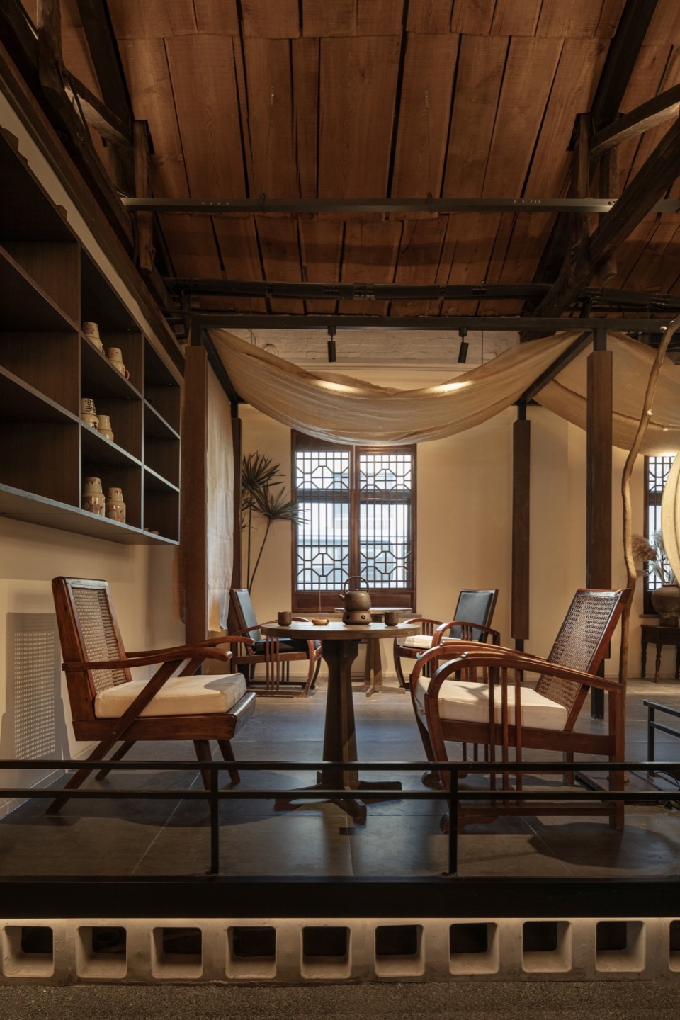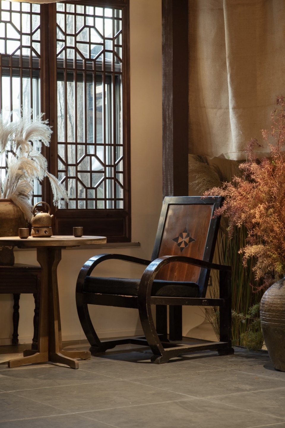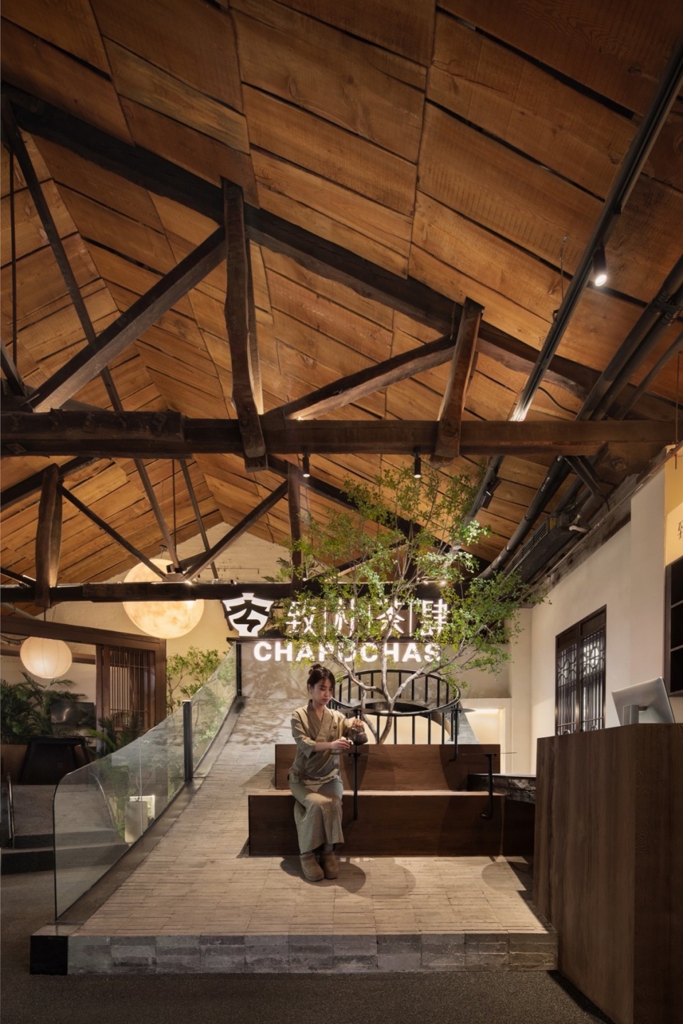 Simple lines, rough wood, and textured walls—pure and natural, free from clichés or ostentation. With minimal ornamentation, the space offers more than just functions for tea-drinking, socializing, and resting; it provides spiritual enjoyment.