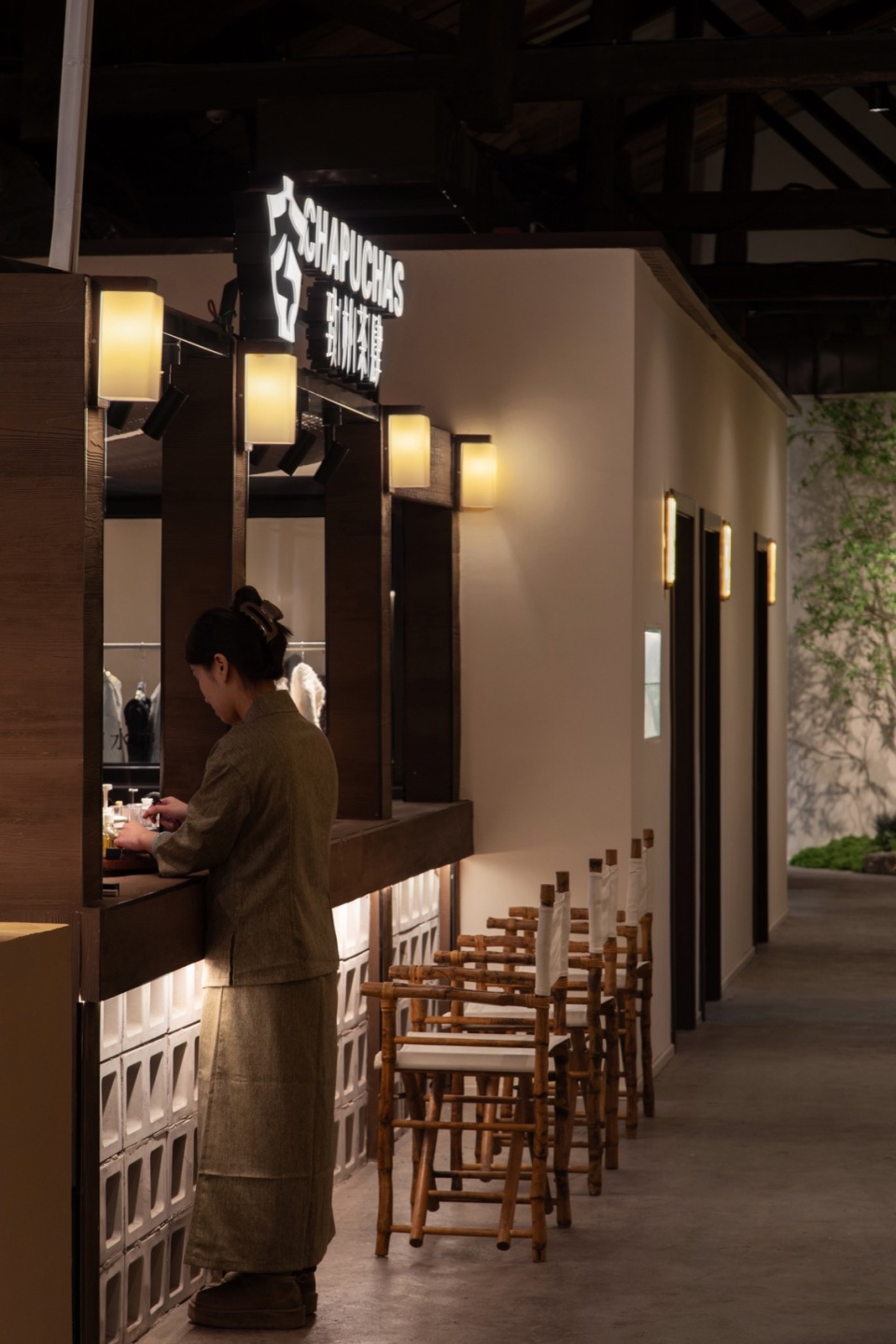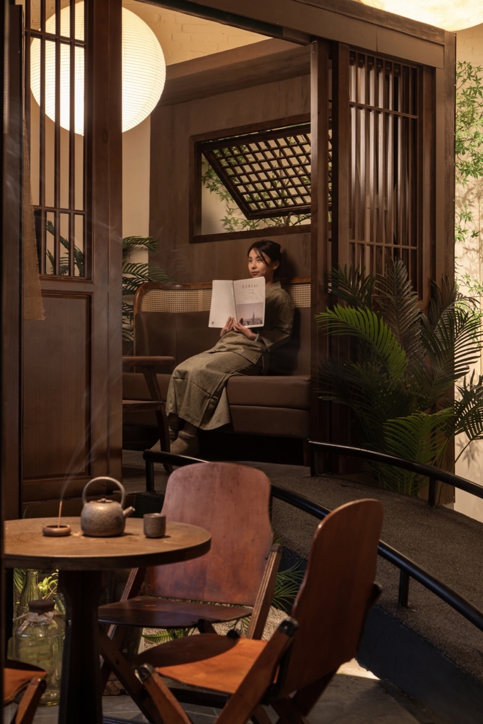 Natural elements aren’t just piled up—they complement the industrial relics’ wooden structures and masonry walls. Tall trees echo the factory’s high ceilings to deepen spatial depth; mossy stones under beams soften the industrial space’s rigid lines. Implanting nature breaks the factory’s closed, mechanical vibe, creating a “tea in forest, man in nature” poetic scene. This harmonizes man-made and natural elements, restoring the tea space to its peaceful core, letting customers enjoy physical and mental healing through tea.