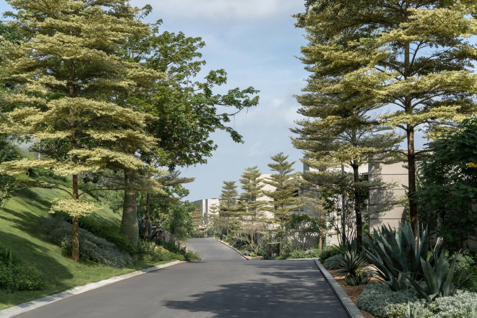 Aranya Phase III Resort Mountain Residence is blessed with a unique location, relying on the undulating hilly landform of Sanya and backed by verdant mountains. This not only forms a natural green barrier, effectively regulates the microclimate, blocks strong winds, and creates a quiet and private atmosphere, but also introduces lush greenery into the community, laying the foundation for the ecological livability of the project. As well as the unobstructed view brought by the adjacent golf course, the Aranya Sanya plot has an extremely wide field of view.