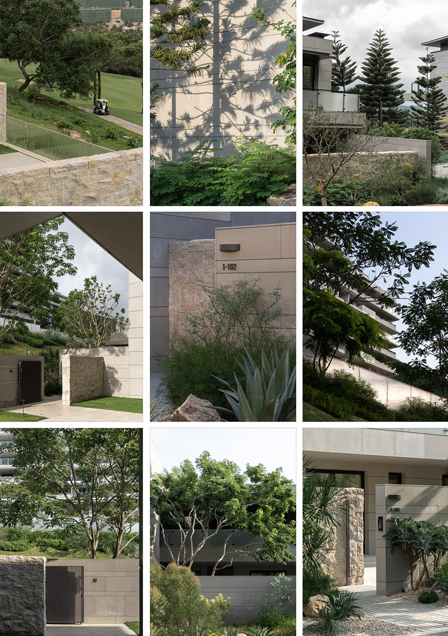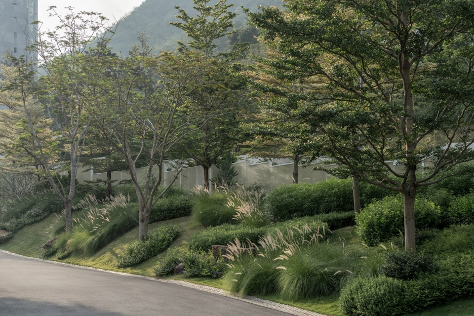 In the early planning process, the landscape has been involved in the treatment of the height difference between the site and the municipal road in advance, and the design will adjust the elevation of each household one by one to re-elevate it to ensure the optimal experience of each household. At the same time, the privacy and noise reduction of the slope top road for the interior are treated, the vegetation level is enriched, and the sound insulation board is implanted.