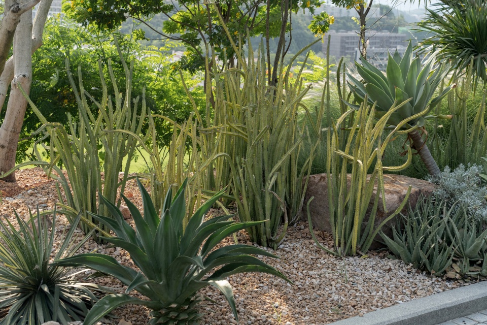 Plant design is often reduced to the background in landscape gardens, and people are more willing to turn their perspectives to hard shapes, pavement parquet, decorative details, landscape wall shapes, etc. These solidified landscape elements will make a more photogenic first impression, but they will not stand up to the scrutiny of time. In this plant construction process, we wanted to integrate the mountains outside the site with the plants in the field, and integrate the mountains of Sanya into the scene. The plant scene will gradually harmonize with the time and the natural scene, and the free-growing shape also adds to the unexpected beauty.