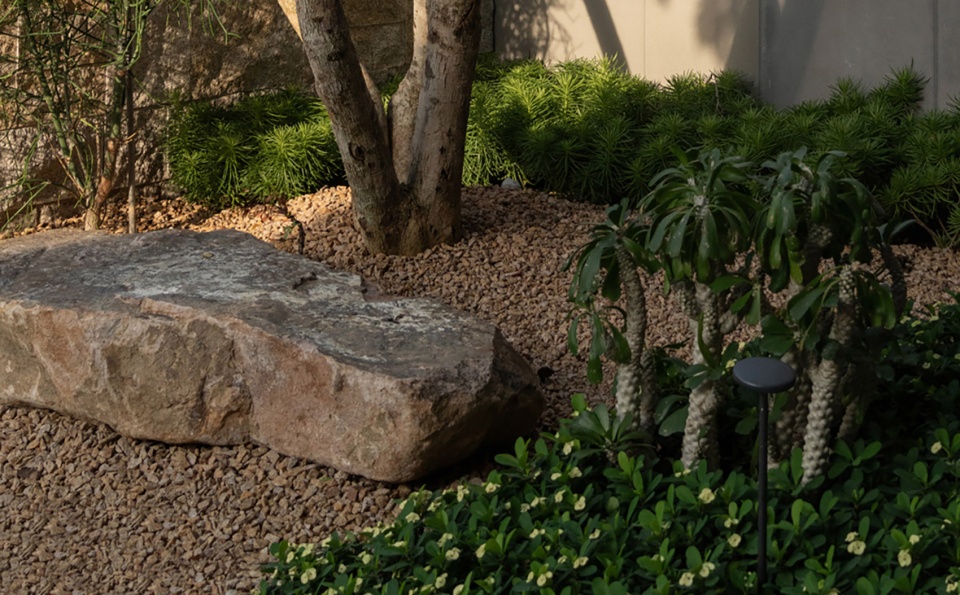Multiple landscaping forms a strong spatial experience and interaction, and light and shadow constitute the most expressive and temporal dynamic elements in the space.