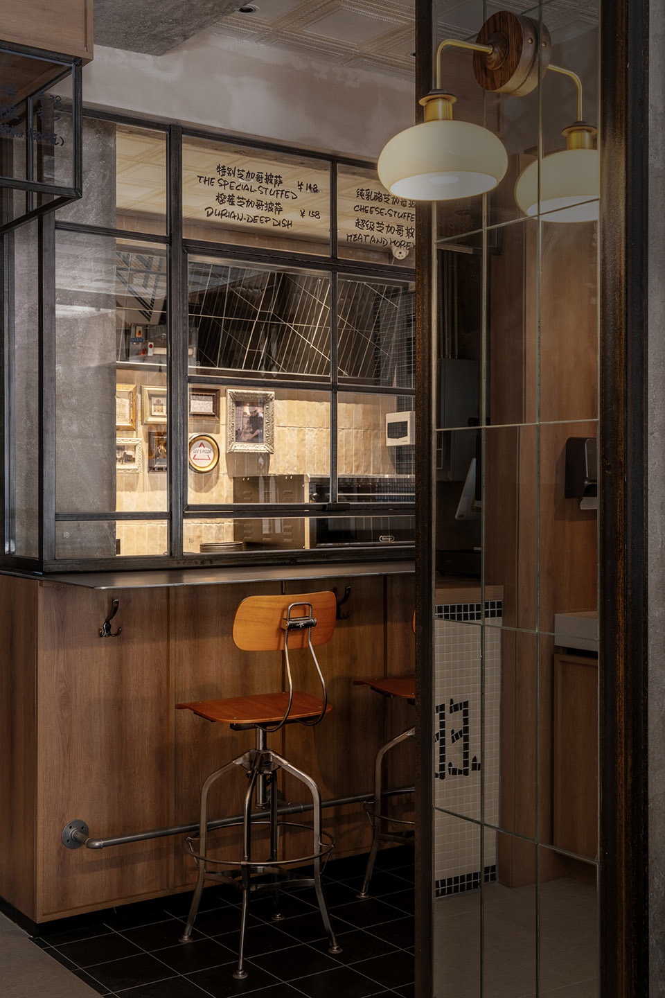 我们提炼了“厚”作为空间的意符来进行设计,希望空间能够在材料上让人感受到这种厚感,同时提炼了芝加哥这个城市在深盘披萨起源时期的特质,将工业时代的气息与元素,融入在空间的设计中。