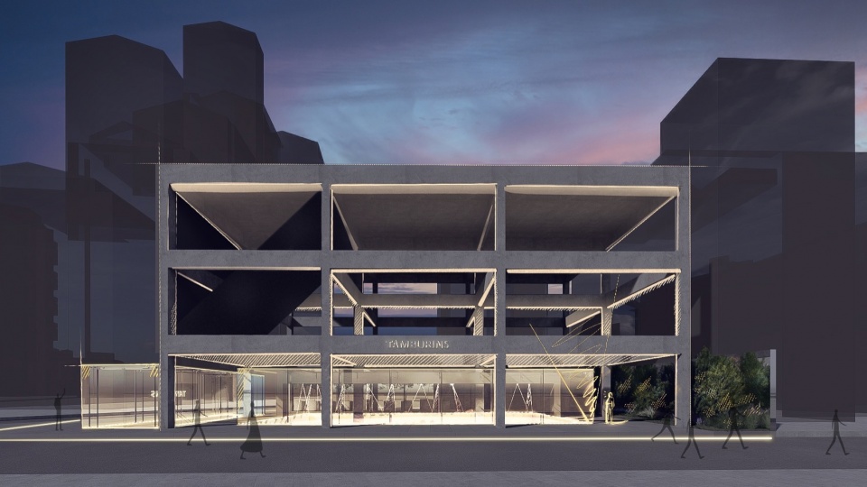 对比强烈的建筑形态在灯光的映照下被感知为一个统一的空间,从而营造出和谐氛围,展现出Tamburins圣水旗舰店独有的空间体验。
