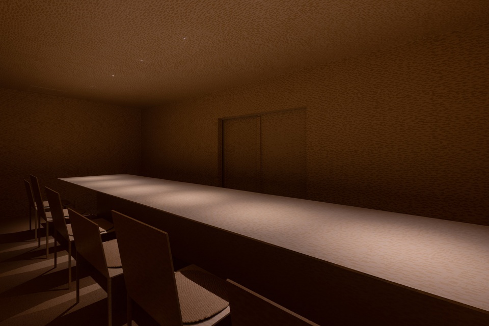 This project is a renovation of the restaurant located in a standalone house in Shirokane, Minato, Tokyo. The request was to add a counter with six seats on the second floor. The counter was designed not as just interior design, but as architecture. The relationship between the space―in which the counter is placed―and the surrounding spaces―including the entire existing space―was carefully considered by designing the counter while regarding the entire building as a site. The boundary between the existing and the new elements was gently softened. The wallpaper, fittings, and equipment on the second floor were intentionally left as they were and the finishes of the counter and its surroundings were slightly adjusted, because the entrance and first floor remain unchanged.