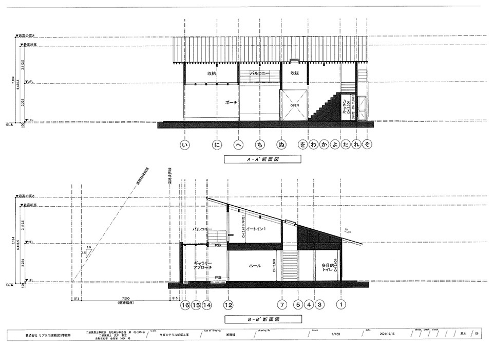 We adopted an RC structure that supports the second floor balcony to prevent deterioration due to north winds, establish the structure, and complete the design of the north facade. The 3.6m high RC wall is designed to make you feel like going up to the second floor when you look up from the road. The back side of this raised foundation doubles as the gallery’s exit route, so paintings and other items can be hung on the P-con on the wall to enhance the gallery’s completeness.