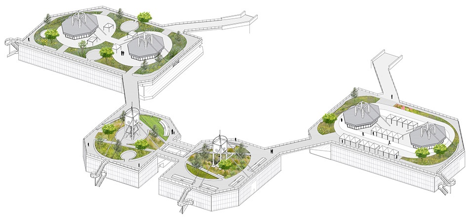 ▼对公众开放的绿色屋顶,transformed into active green roofs accessible to the public