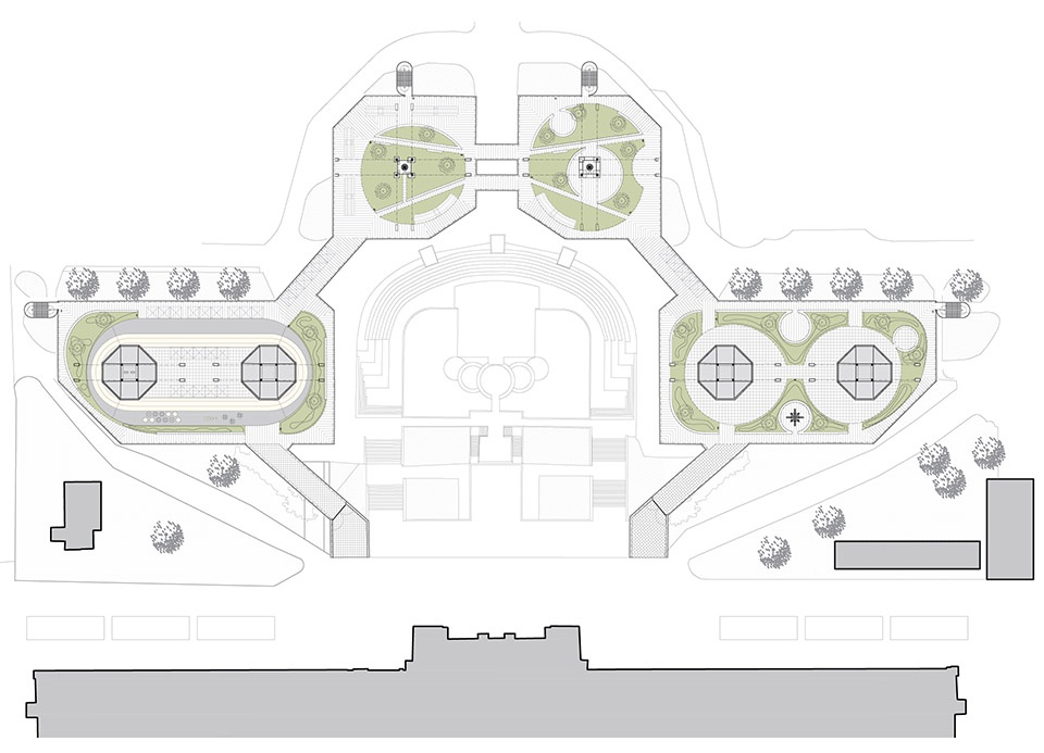 此次改造的核心亮点之一是屋顶的全面更新。原本废弃、未被利用的混凝土屋面被改造成对公众开放的绿色活动屋顶。这一设计回应了当下对城市可持续发展的关注,不仅能缓解热岛效应,也改善了雨水的径流管理。同时,该屋顶也成为一个功能多元的开放空间,可全年使用。除绿地休憩外,还设置了简餐服务区、跑道和游乐设施,转化为集休闲、运动、社交于一体的多功能场所。