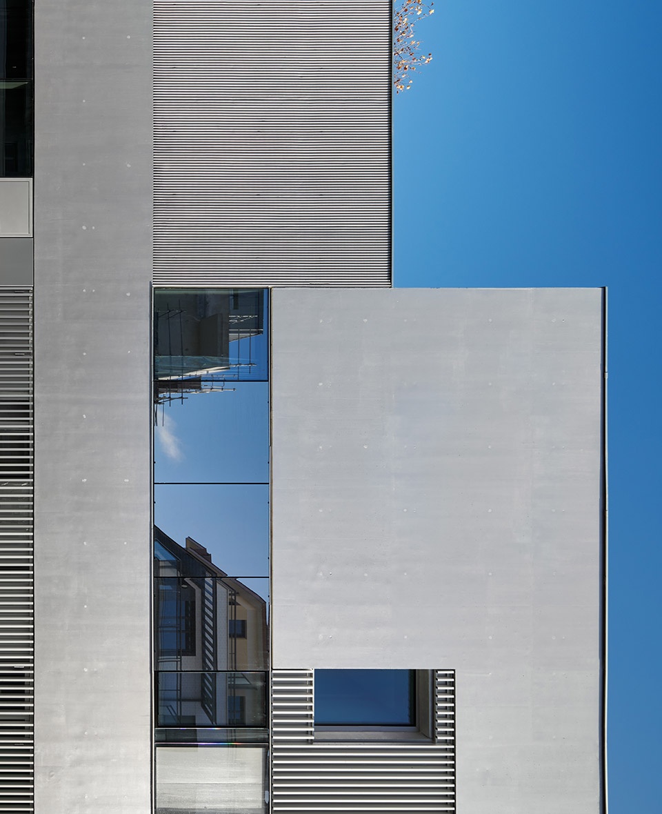▼外立面结合了透明的反光玻璃幕墙和竖向条纹表面,facade features transparent panes of reflective glazing and vertically striped surfaces